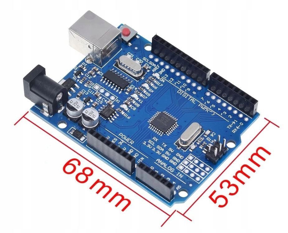 ✔ Он оснащен 14 цифровыми входами/выходами, из которых 6 могут действовать как выходы pwm - например, для обслуживания сервопривода или драйвера двигателя, 6 аналоговые входы с разрешением 10-битного разрешения и разъемом miniusb.