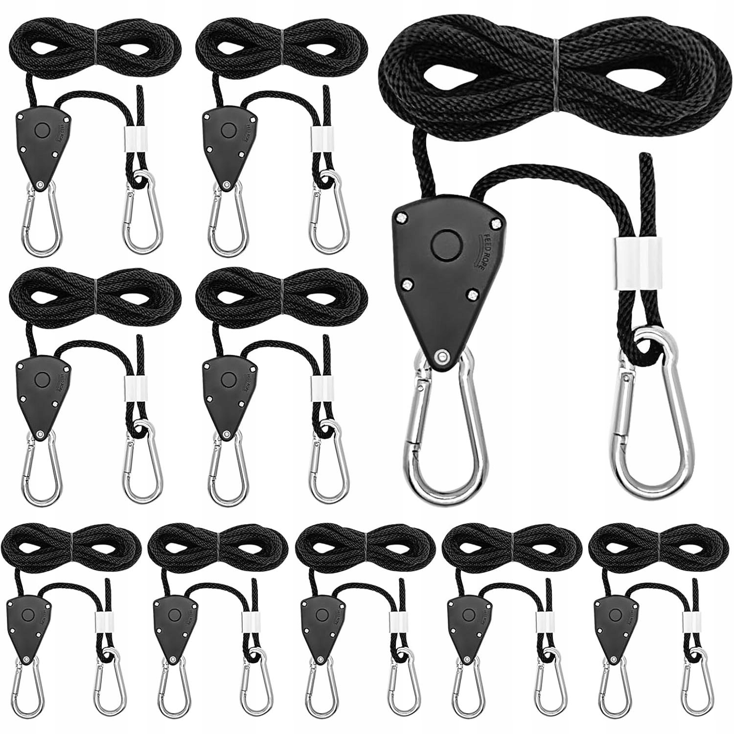 Внутренний цыпет с крючком имеет металлическую передачу высокой длины, которая позволяет быстро отрегулировать и блокировать веревку. 📏 Просто потяните свободный конец веревки, чтобы отрегулировать высоту подвесных предметов.