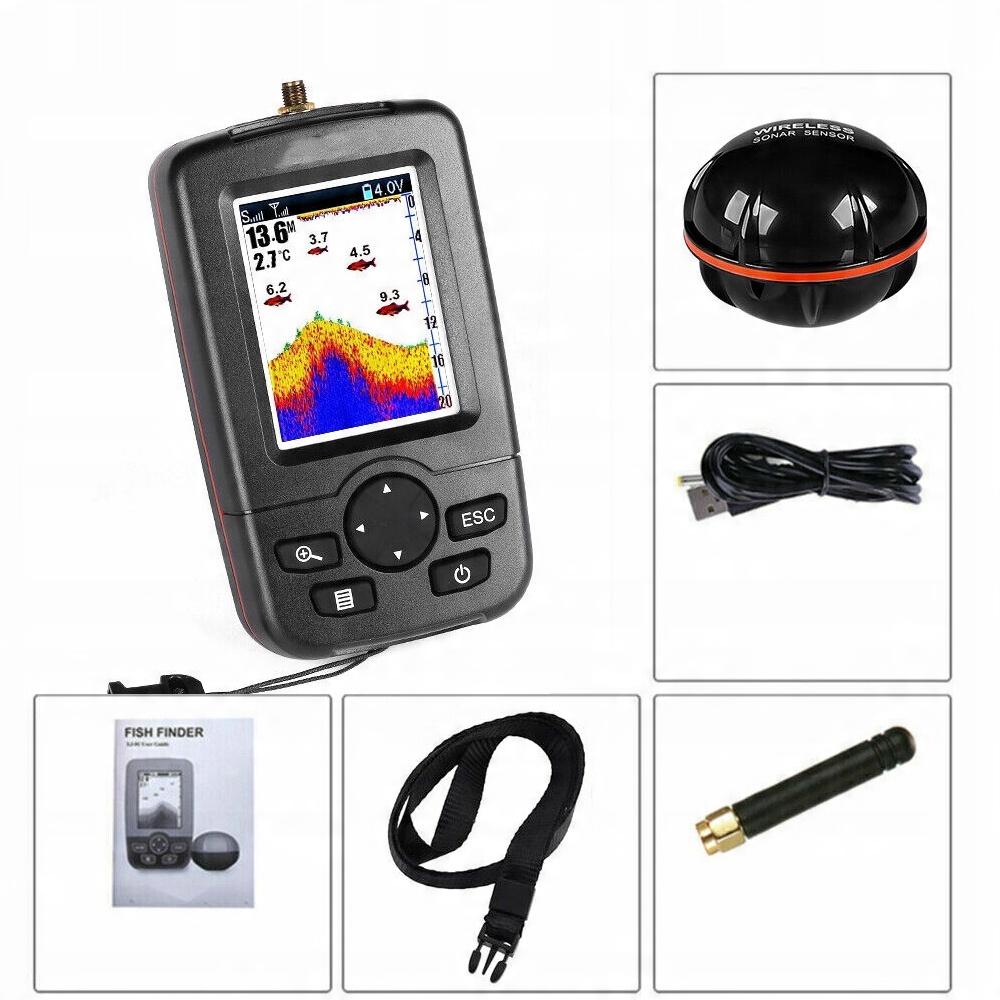 - Беспроводная эхосона с диапазоном 100 м с датчиком сонара для рыбного промысла с приманкой. Оснащен кабелем, который облегчает использование.