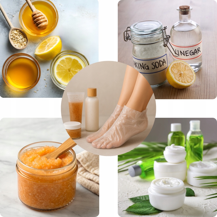 - Возможность использовать домашние рецепты – альтернатива покупным отшелушивающим и питательным маскам для ног