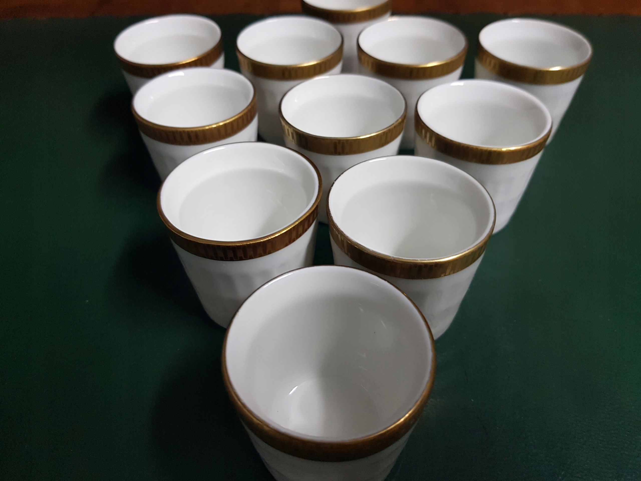 Предмет аукциона - 11 подставок для яиц.Подпись.Золотые ободки.Белый фарфор.