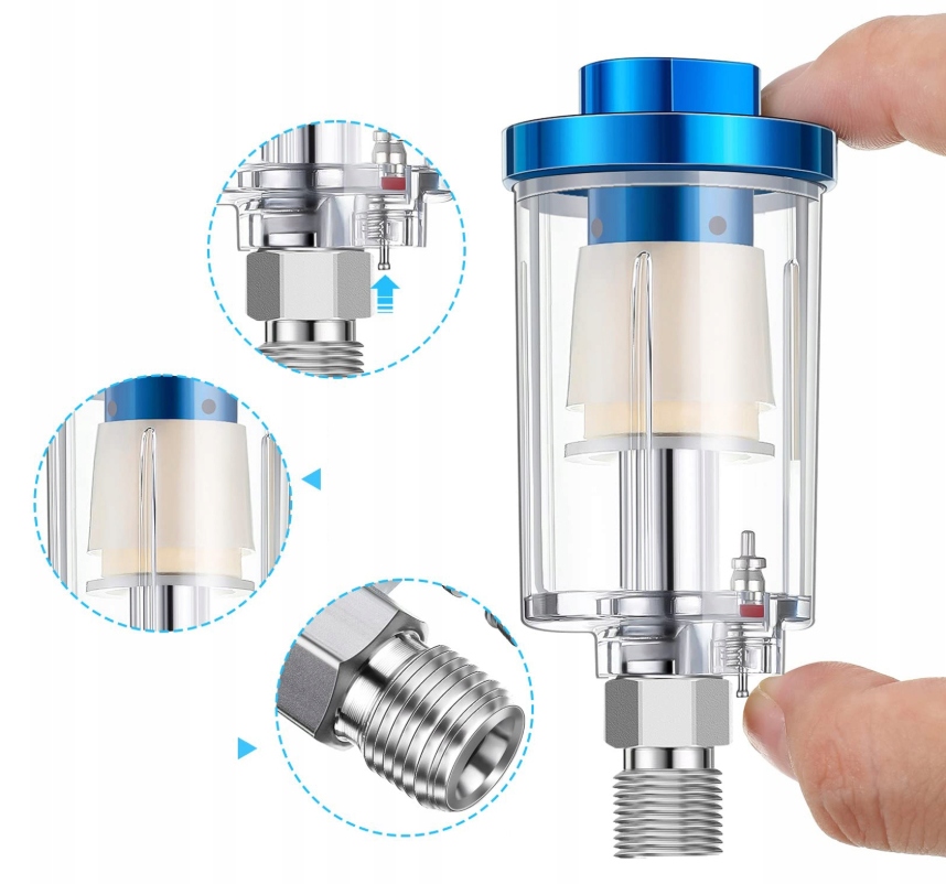 Функция: Эффективно фильтровал воду, масло, камень и частицы в сжатых воздушных трубах. предотвращает вход примесей в краску.