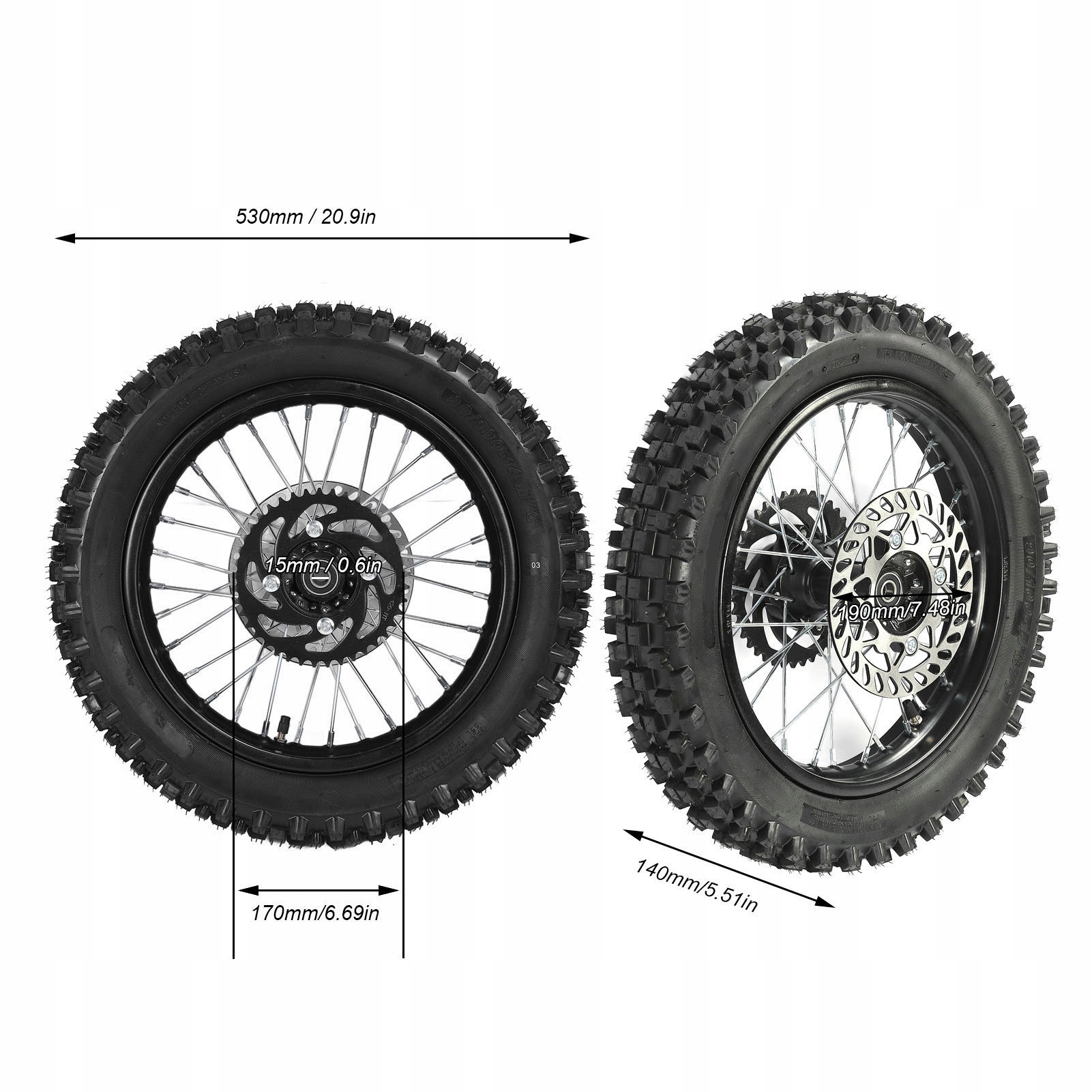 - Диаметр отверстия оси: ок. 15 мм/0,6 дюйма 190 мм/7,5 дюйма