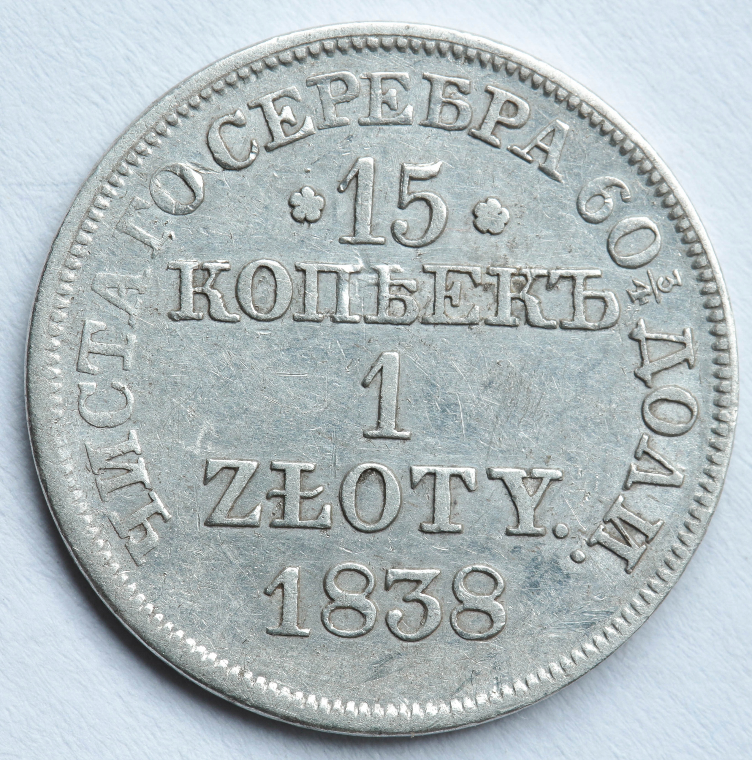 15 Kopiejek = 1 Zloty 1838 MW