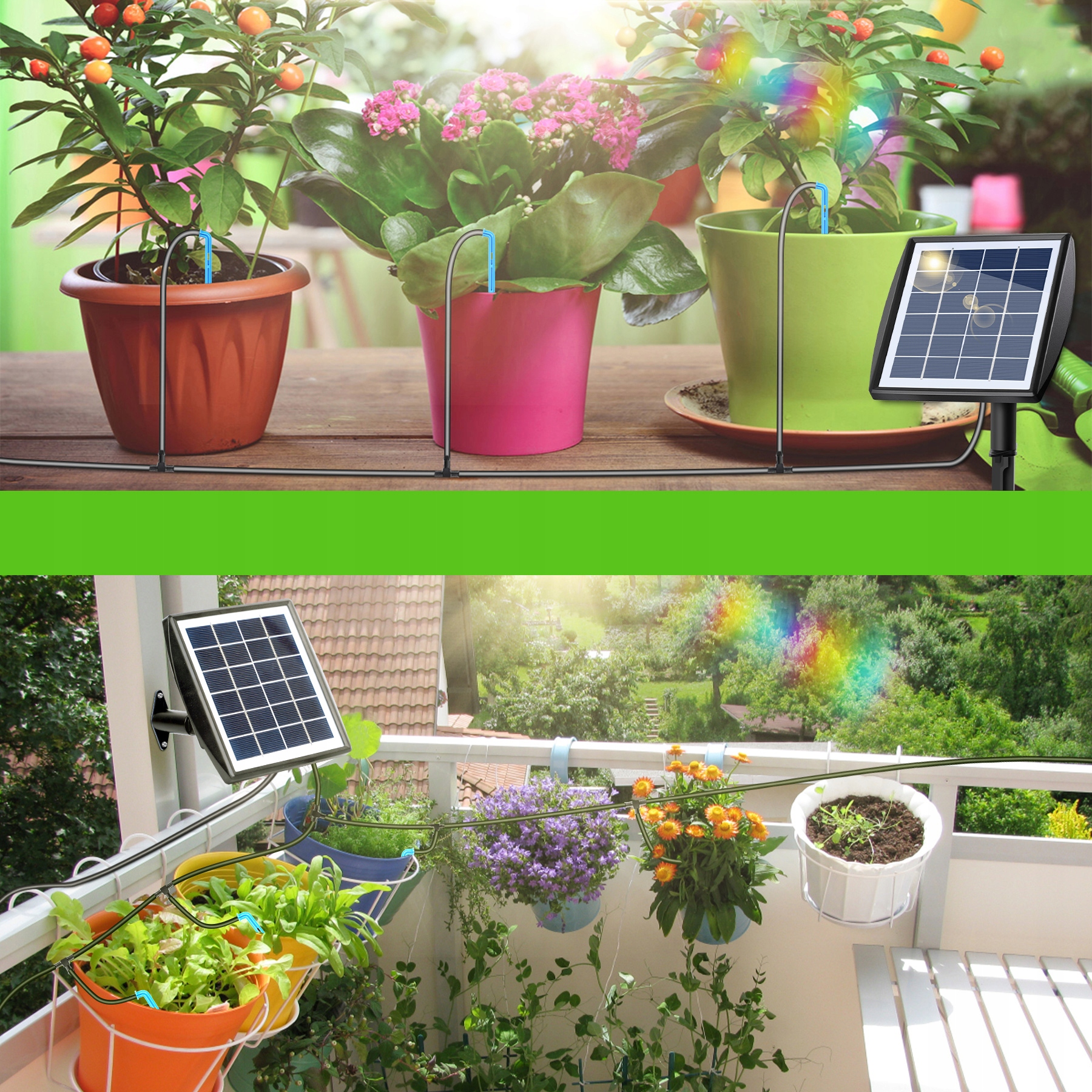 Этот универсальный комплект автоматической системы капельного орошения работает на солнечной энергии. Никакой дополнительной проводки или установки аккумулятора не требуется. Он изготовлен из водонепроницаемого и устойчивого к солнечному свету материала. Солнечная система орошения уличных растений позволяет раз и навсегда ощутить истинную эффективность.