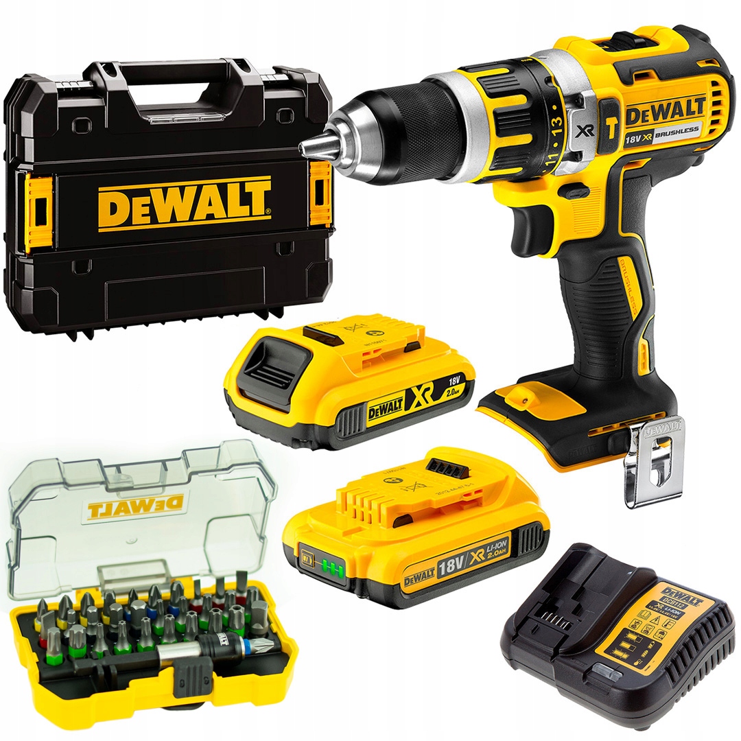 Бесщеточная ударная дрель/винтоверт 18В 2x2Ач 60Нм 18В DeWALT DCD795D2 упакован в системный кейс TSTAK + набор бит DeWALT из 32 предметовDT7969