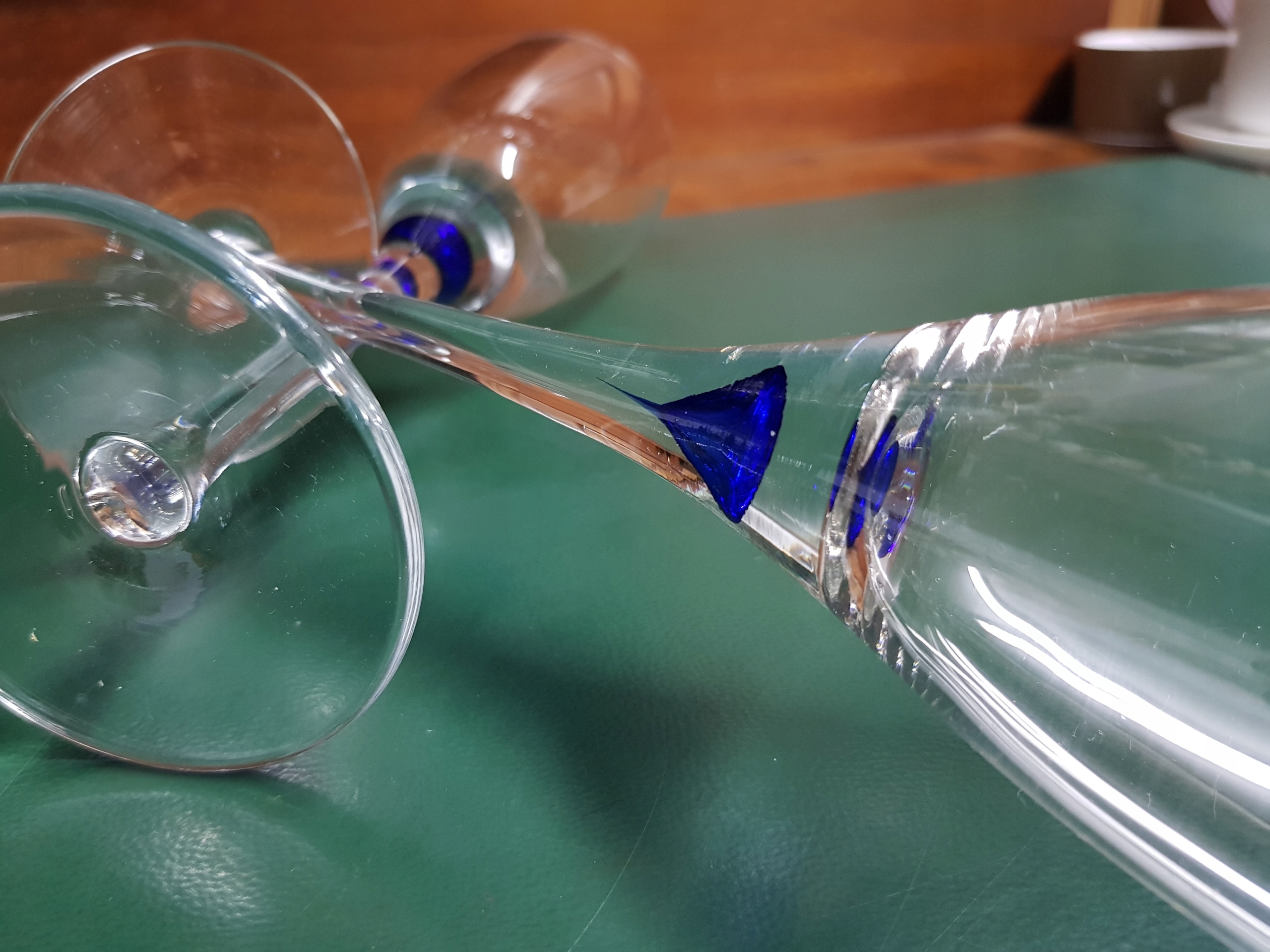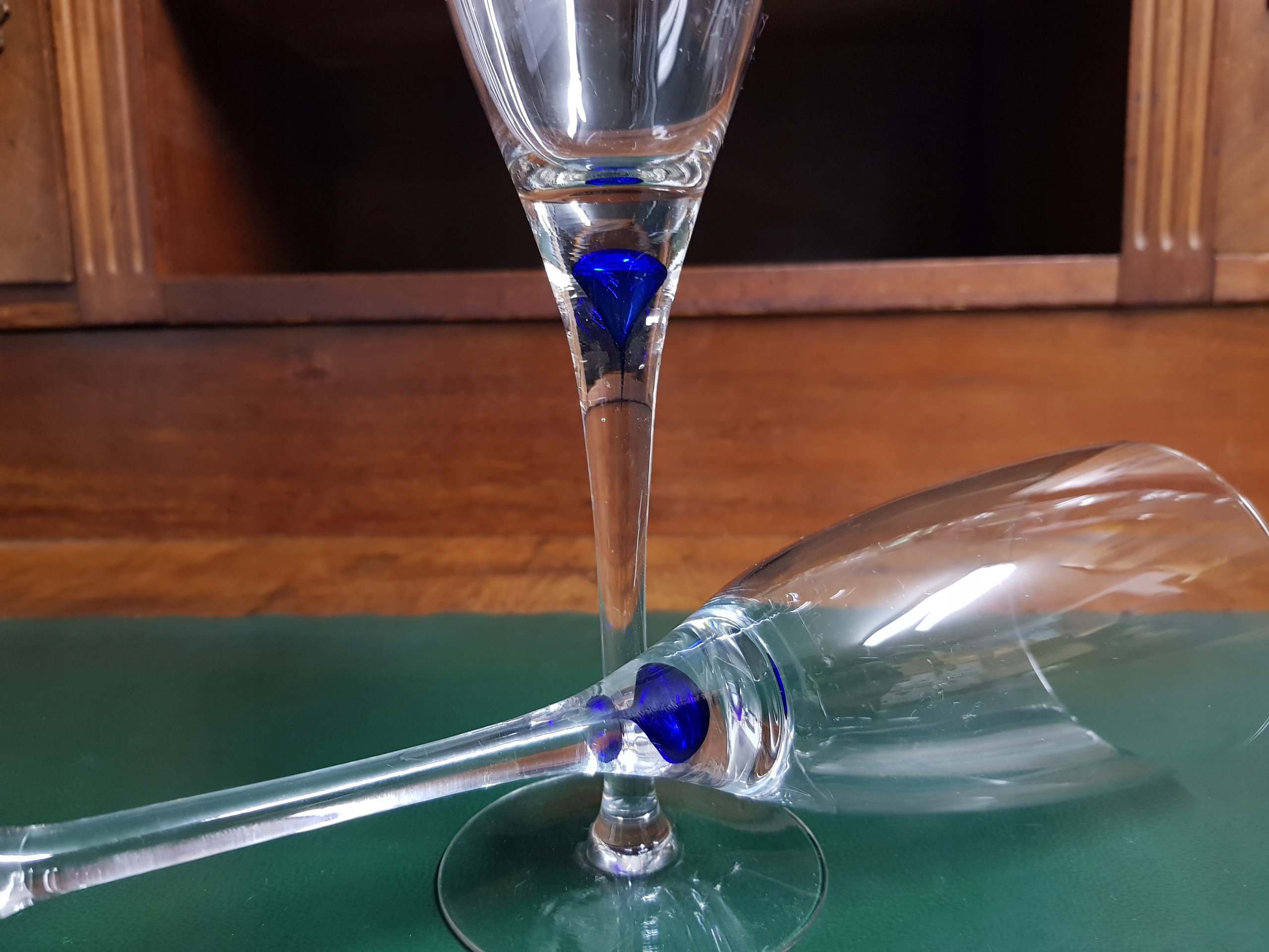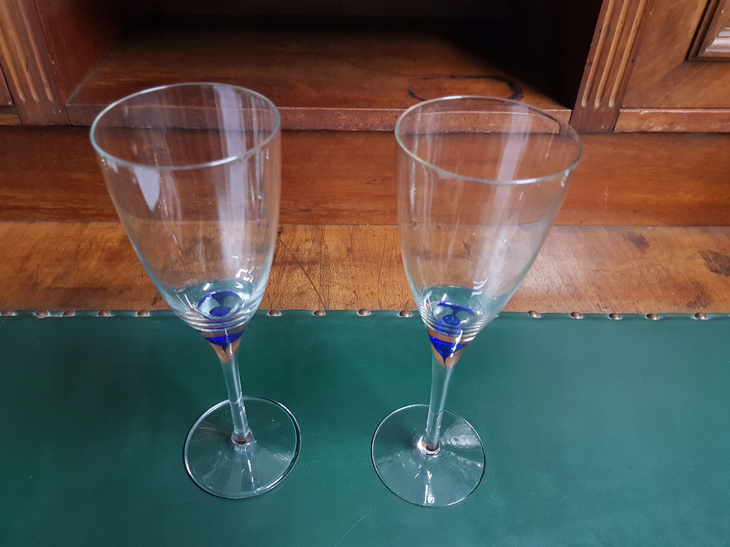Предмет аукциона - 2 больших бокала для шампанского.Белое стекло с погруженным голубым глазком.