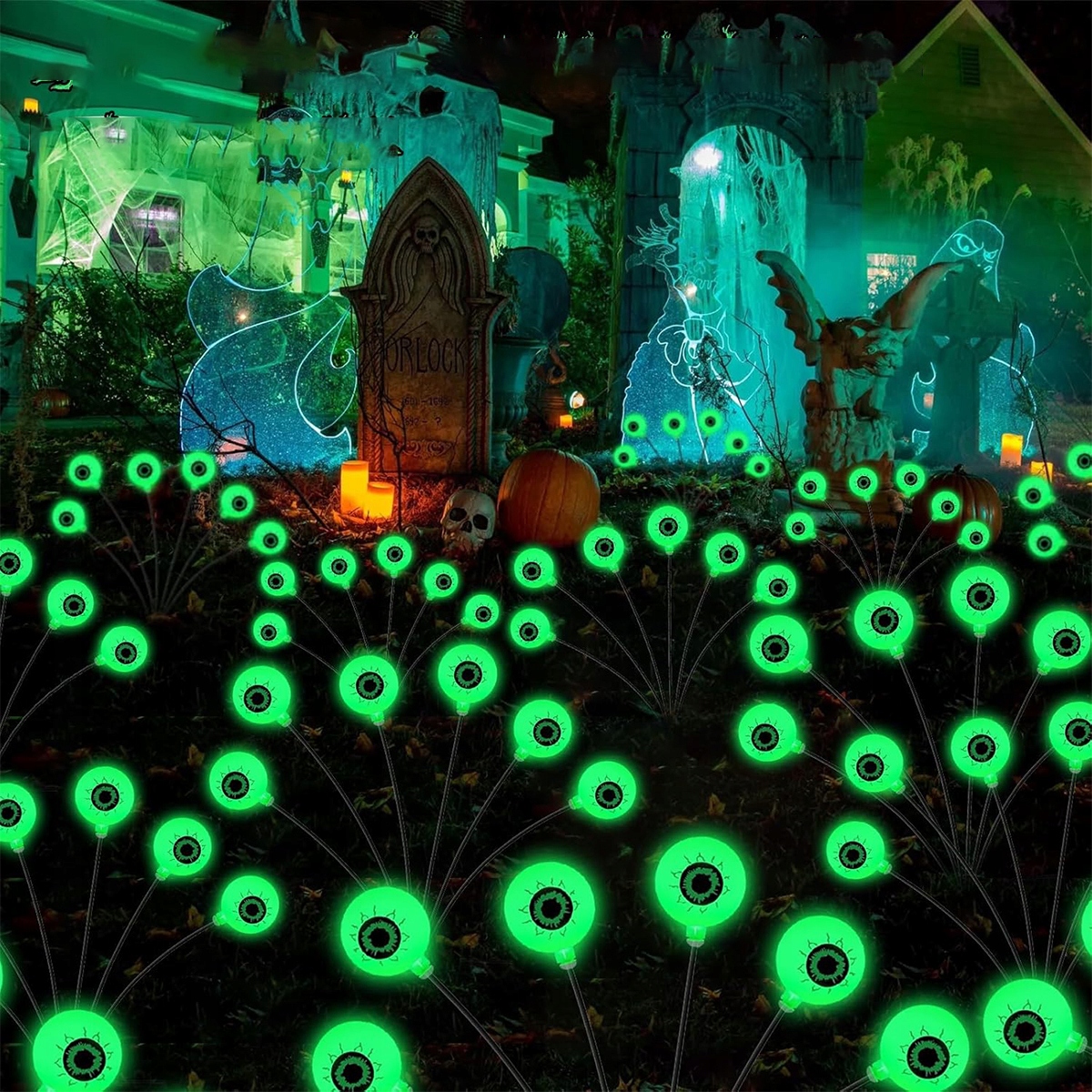 2 куска декоративного Хэллоуина для наружного использования, 6 зеленых светодиодных ламп в форме глазных яблок, 6-головых светодиодных ламп, украшения на Хэллоуин, светящее освещение в саду для наружного использования, 3 батареи AA (не включены) h1>