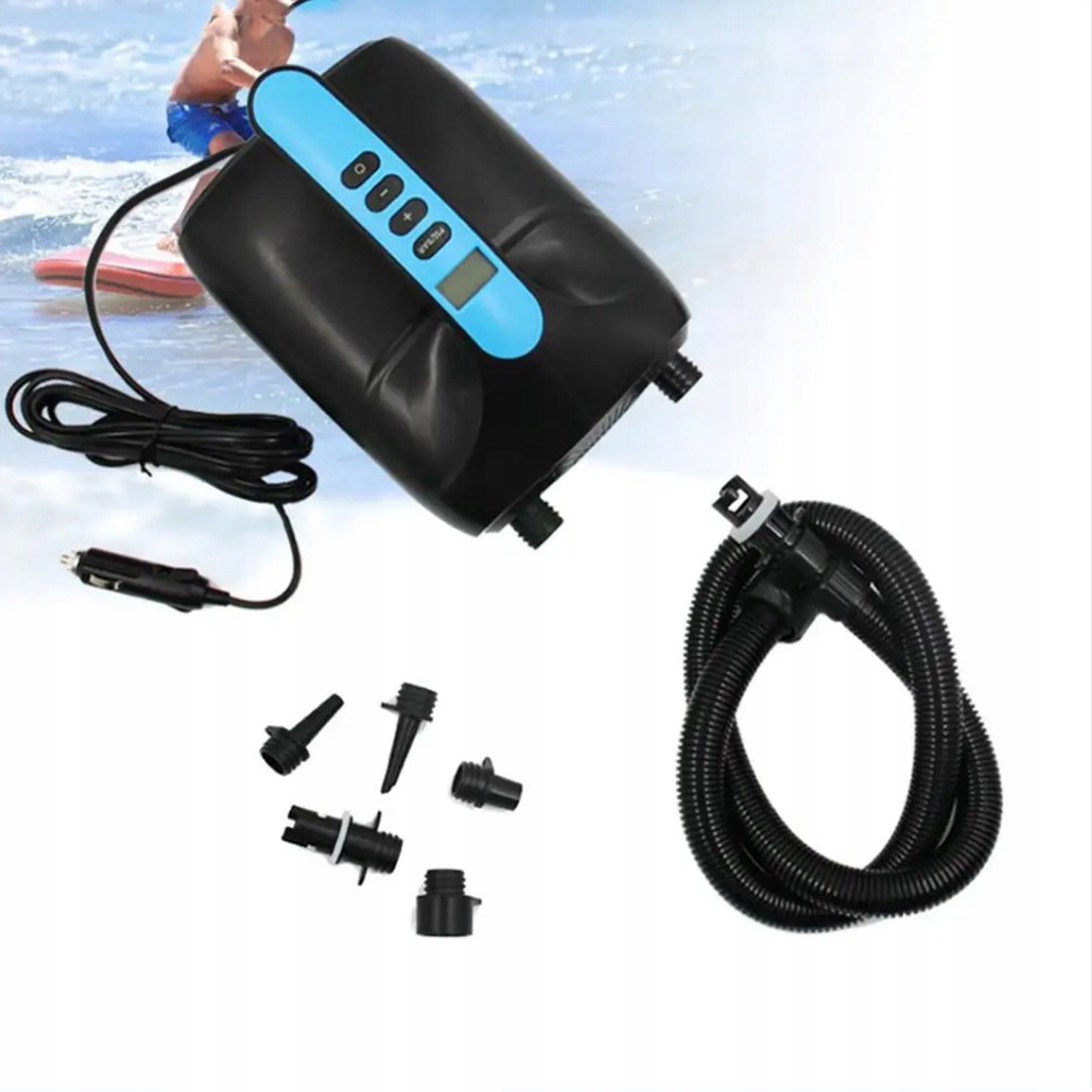 ✔️Электрический SUP-насос имеет отверстия для накачивания и сдувания и поставляется с 6 различными насадками.