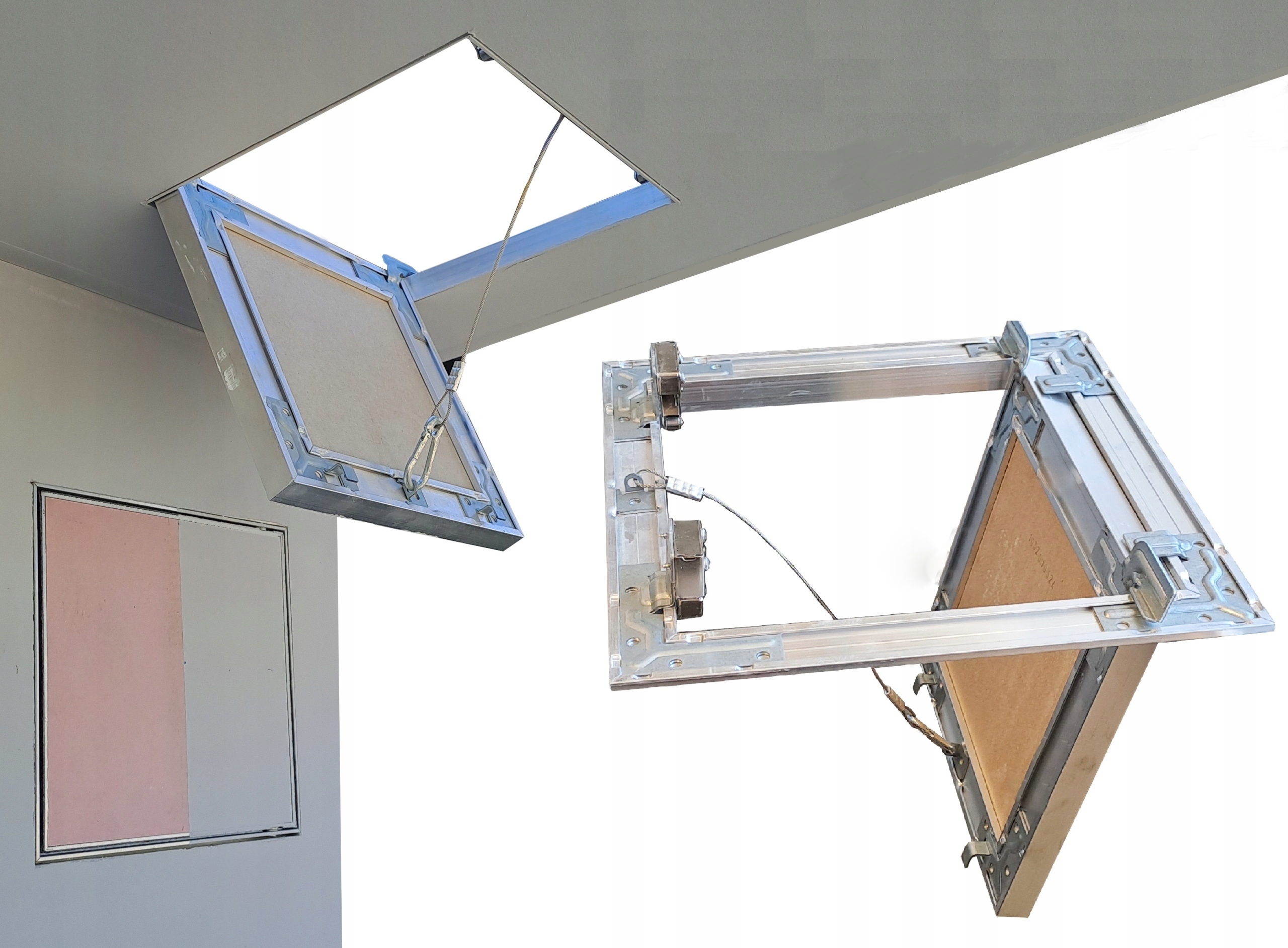В случае установки дверных дверей, по размерам более 60x60 см, по соображениям безопасности мы рекомендуем сделать дополнительную рамку дополнительной рамки из профилей вокруг контрольного отверстия, чтобы укрепить структуру (например, как показано ниже).