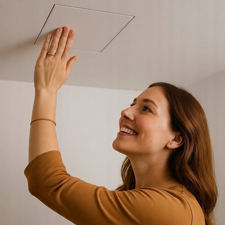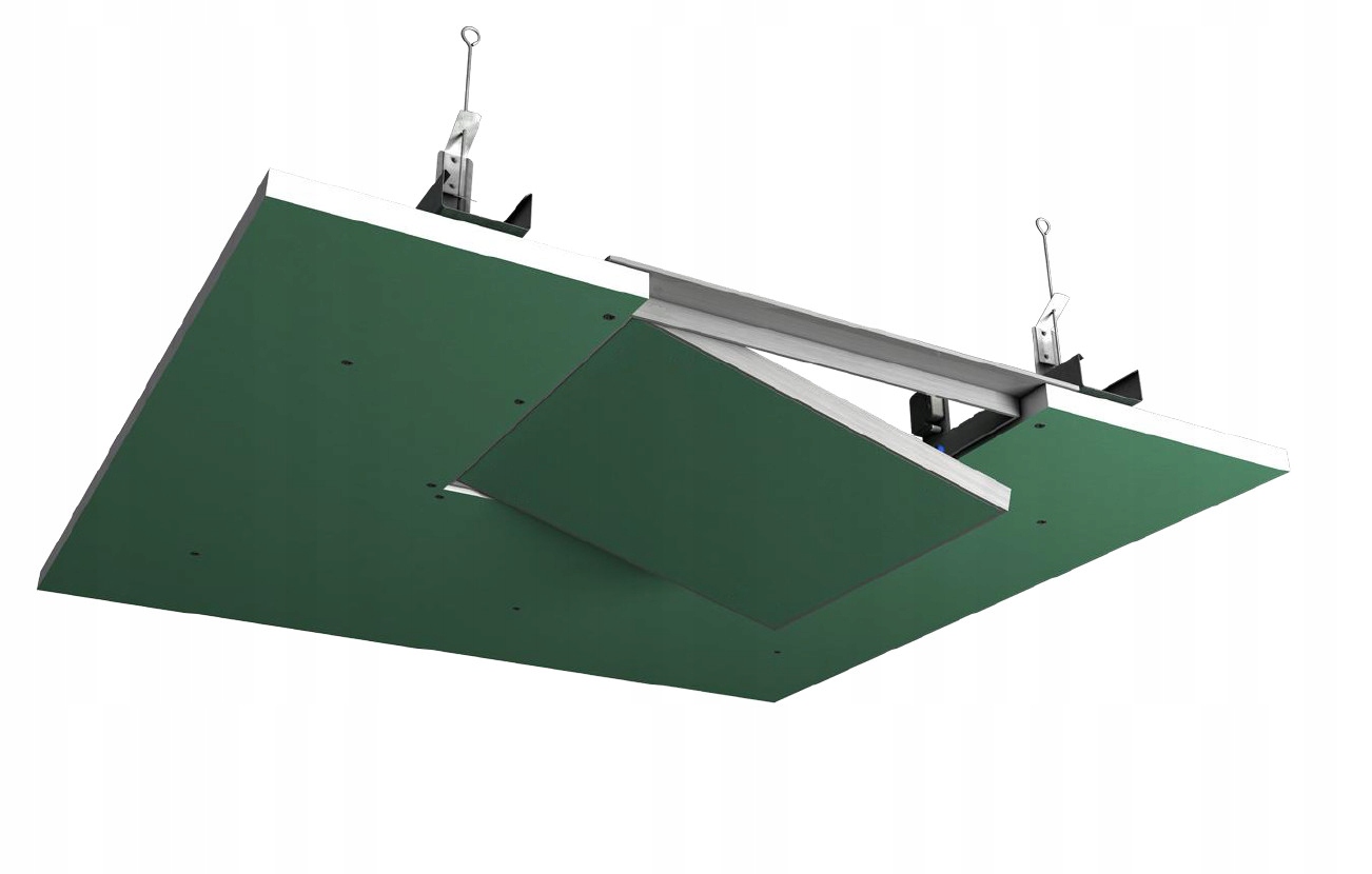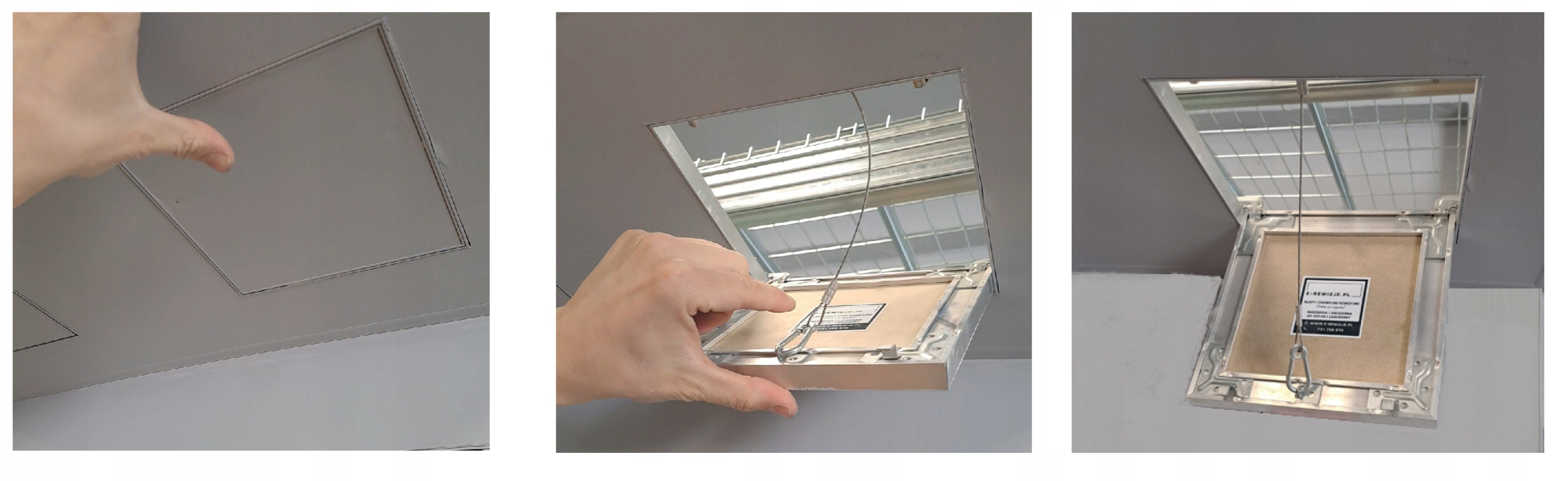 Для большей безопасности лоскут оснащен защитным шнуром, который установлен на раме и предотвращает выпадение пластины. Защитный кабель работает, особенно когда ревизия установлен на потолке.