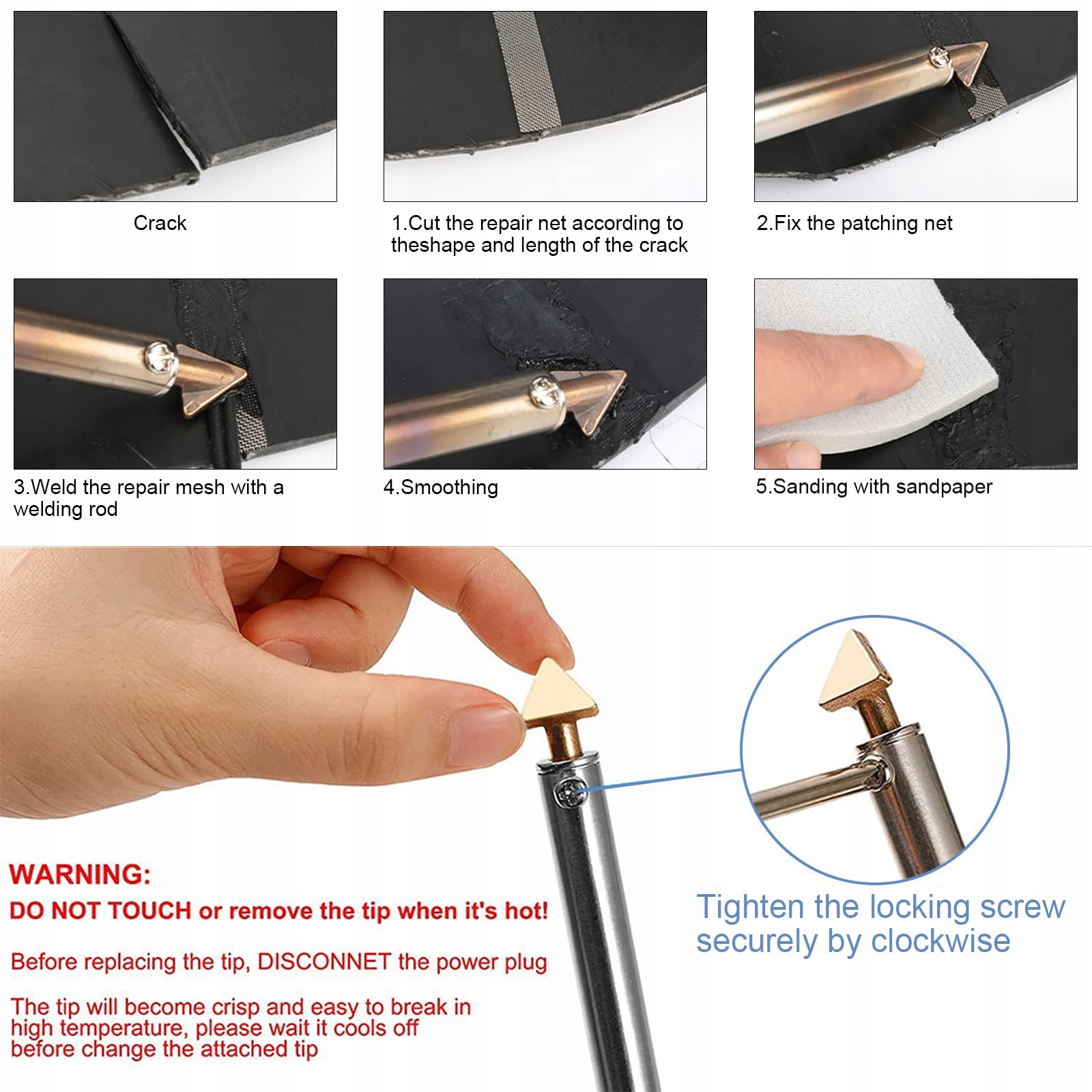 ✅ 【Пластиковая сварка】 Комплект для ремонта пластика автомобиля включает в себя: Сварка, наконечники, кончики, пластиковая, сетка из нержавеющей стали, металлическая подставка, проводная щетка и отвертка.