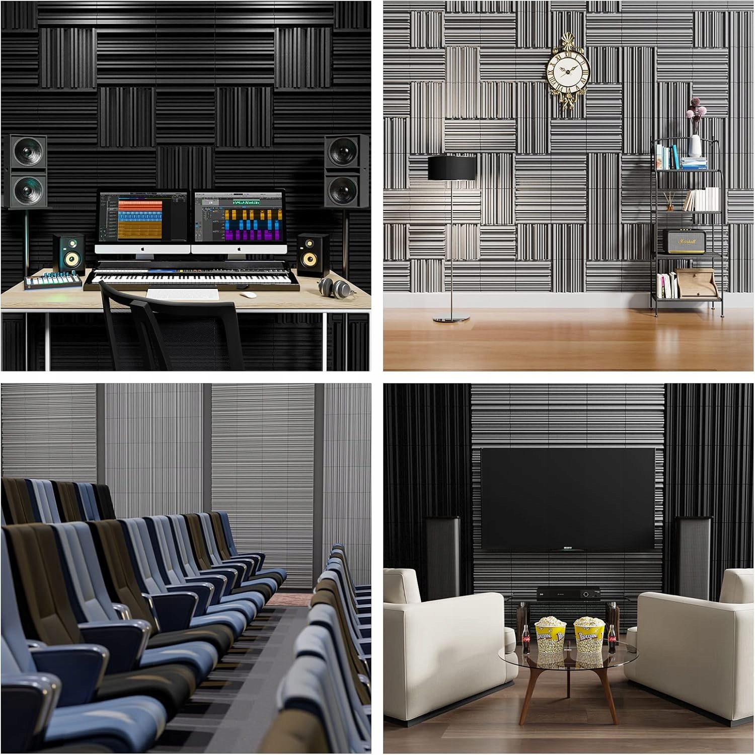 Клей на звукопоглощающих пластинах очень надежна и может быть установлен на разных поверхностях стен. После установки панели -поглощения звука разработаны так, чтобы они не легко упали и не могли легко распаться.