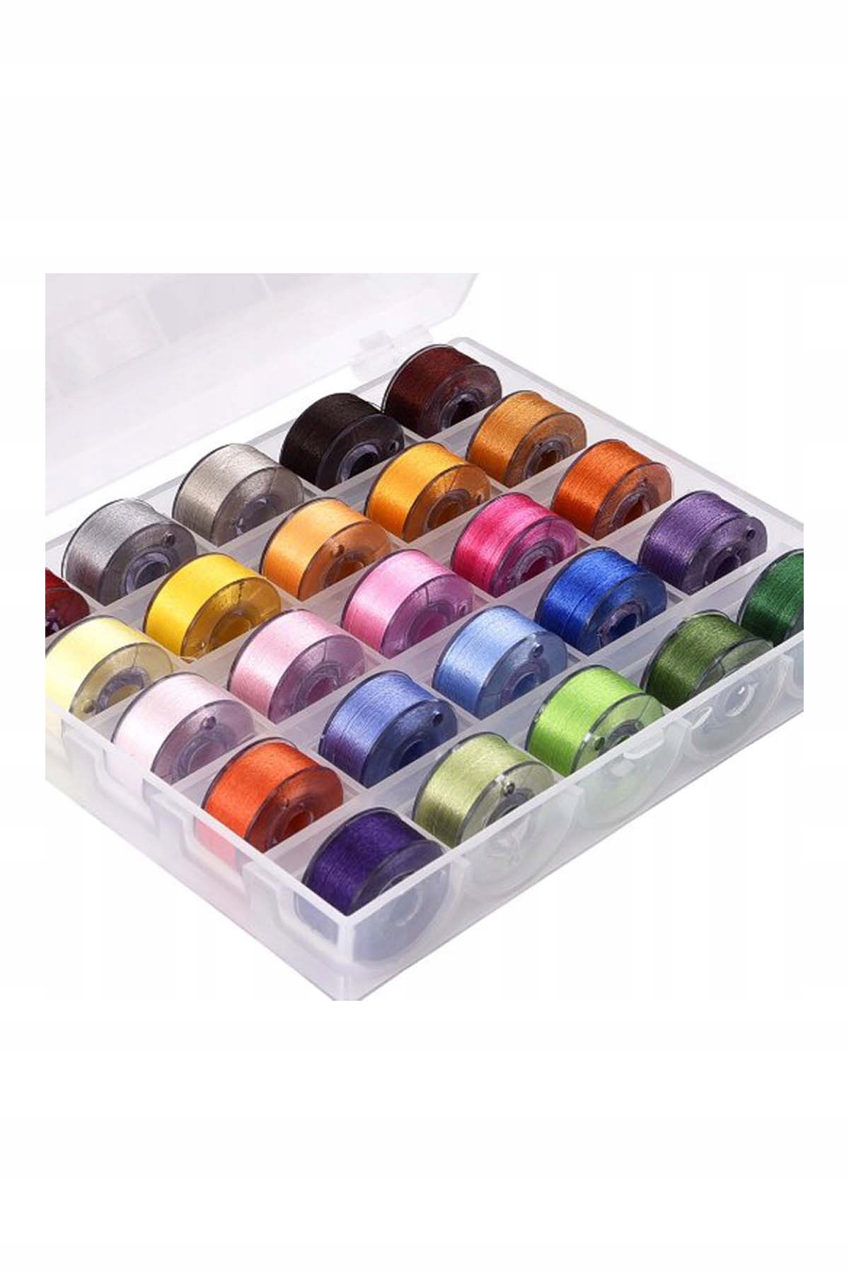 Набор из 25 красочных потоков на катушках с коробкой - для домашней машины