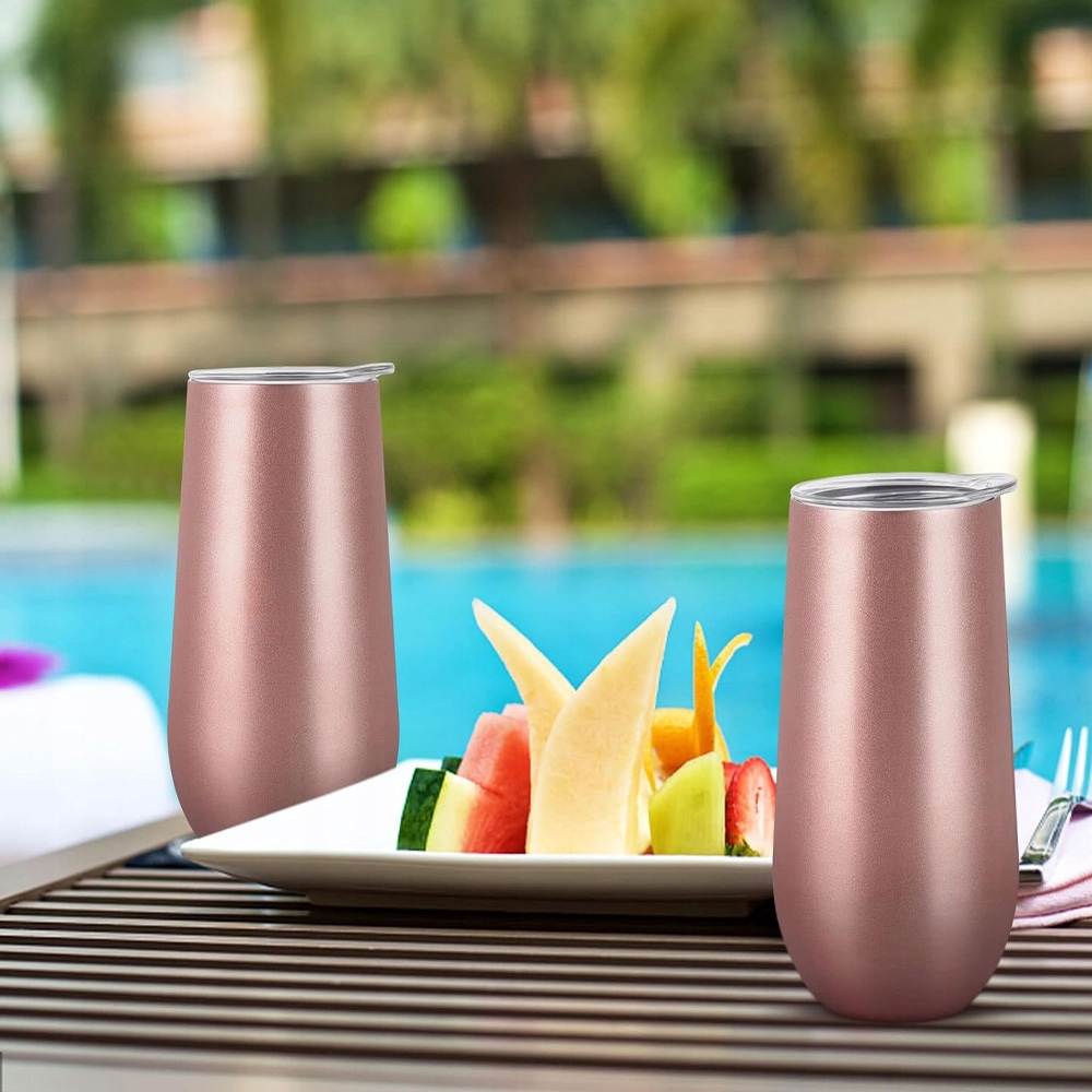 Набор винных чашек с розовым золотым флейтами шампанского оснащен вакуумной технологией двойной стены, которая поддерживает температуру напитков в течение более 3 часов и холода в течение примерно 6 часов. Эта уникальная кружка является идеальным компаньоном для шампанского и коктейлей или других напитков.