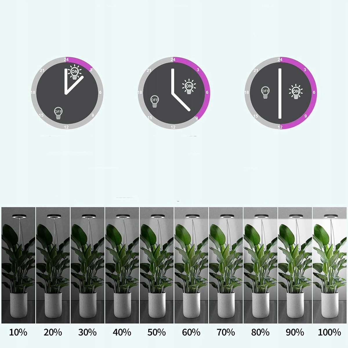 ✅ 【таймер 3/9/12 часов】 Лампа для растущих растений в комнатах имеет трехчасовую функцию таймера. Вы можете установить предполагаемое время. Вам не нужно вручную включать и выключать свет каждый день. Включите функцию таймера, чтобы убедиться, что ваши растения смогут постоянно принимать энергию, что чрезвычайно важно для их здорового роста.