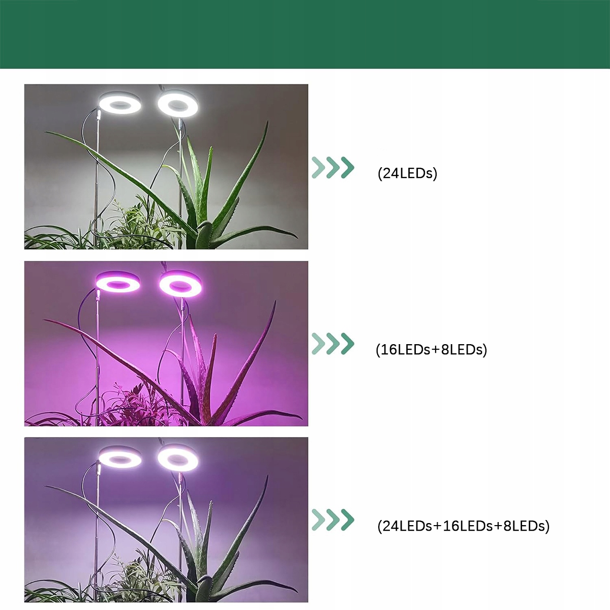 Светодиодная лампа для растений, 2-Głowicowa, 2 * 42 светодиодов для растений, полный световой спектр для выращивания растений с таймером 3/9/12 с USB-адаптером, 3 режимами освещения и 10 уровнями яркости (черный)