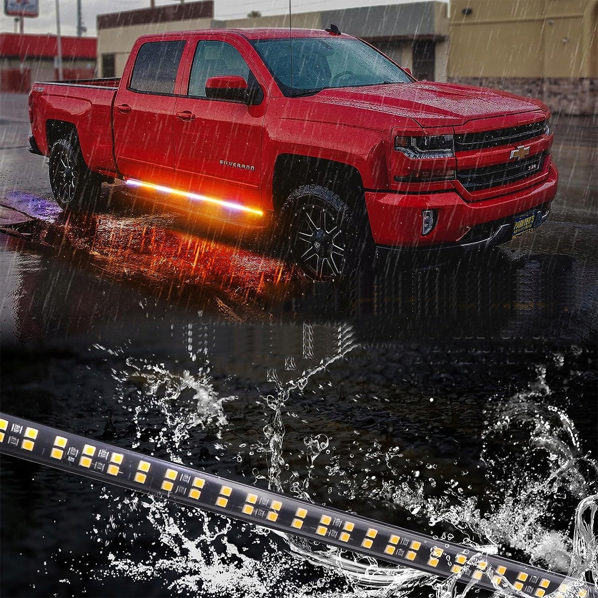 2 Stück 70 Zoll Lkw Blitzleuchten Streifen 864 Led Not Faste Fahrrett Leuchtet Bernstein+Weiß Blinknde Warnung Gefahr Sicherheitsleuchten IP67 Wasserdicht Flexibel für Lkw Baufahrzuge Pickup 12V / 24V.