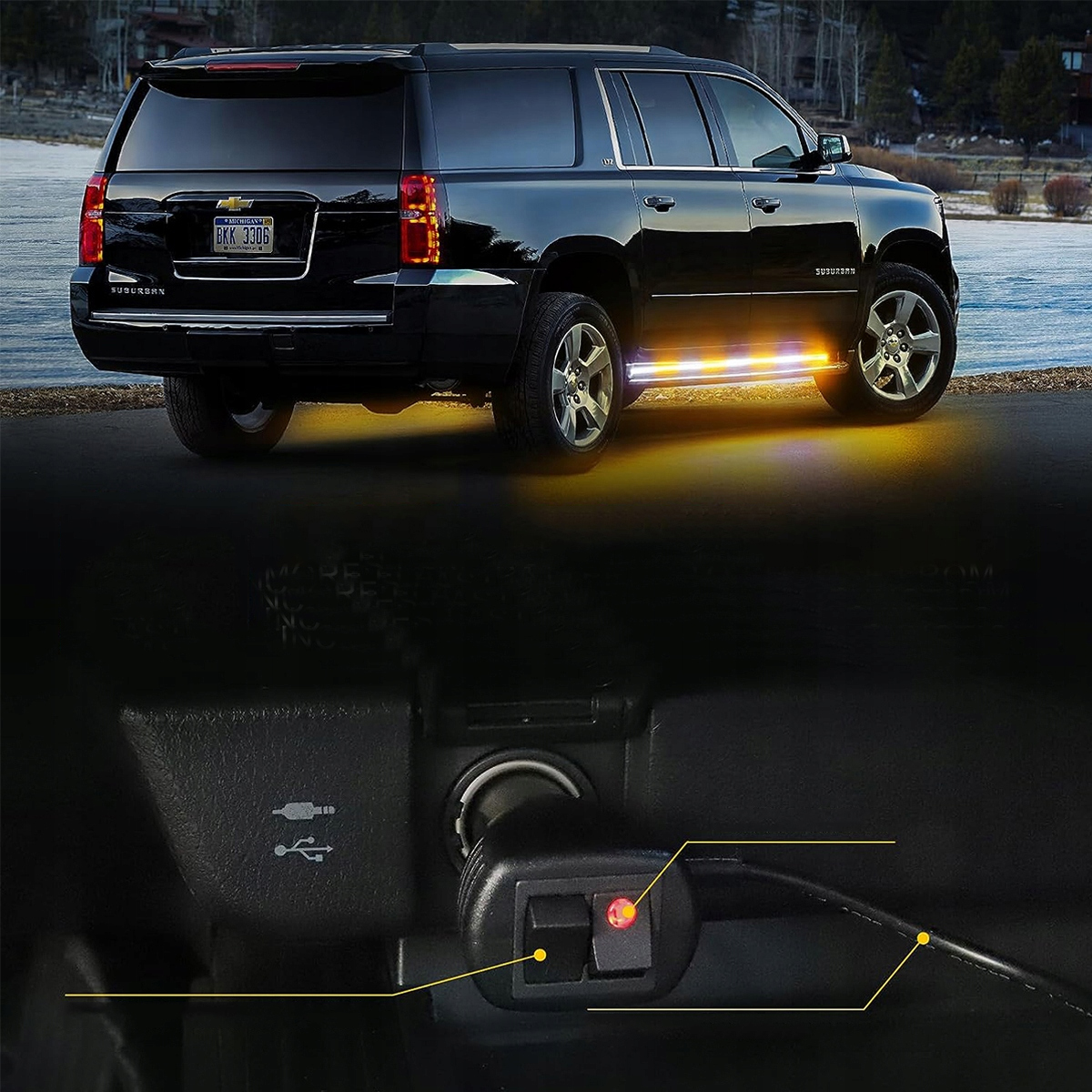 Этот 70-дюймовый (1,78 м) стробоскопный ремешок оснащен 432 яркими светодиодами (864 светодиода для 2 световых полос). Даже в течение дня янтарные белые огни ясны и заметны для водителя, а также эффективно предупреждают от опасности.
