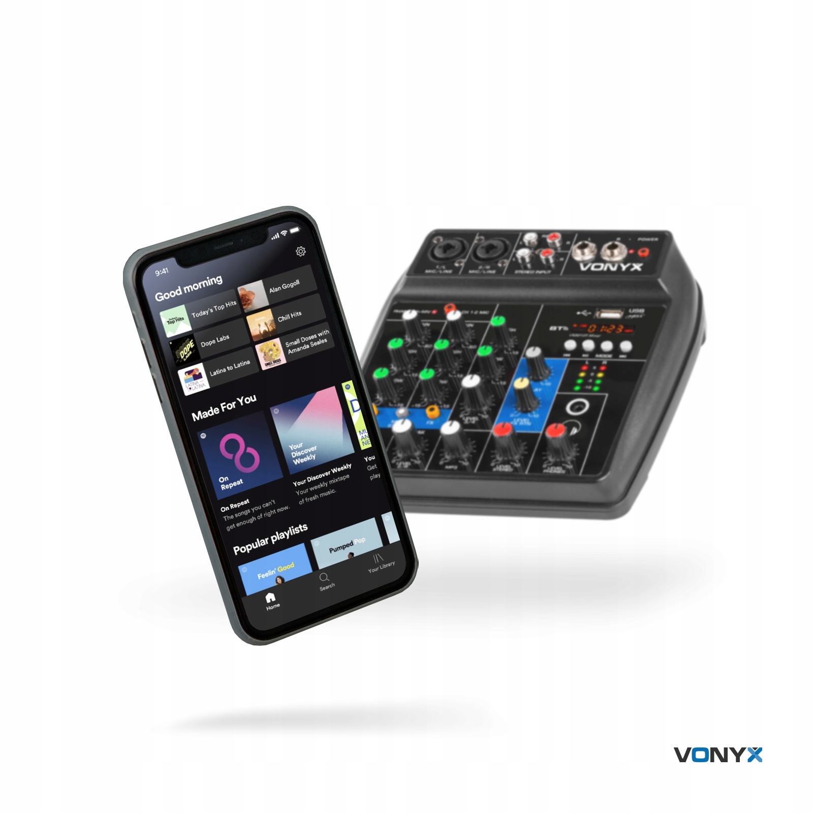 Небольшие студии, подкасты, записи — это лишь несколько примеров применения этого микшерного пульта. Аудиомикшер оснащен Bluetooth, mp3-плеером USB и интерфейсом USB, поэтому вы можете подключить его напрямую к компьютеру. Он оснащен фантомным питанием для использования конденсаторных микрофонов, что делает его идеальным для (домашней) студии, например, для записи вокала или речи (например, подкастов). Таким образом, VMM100 является универсальным микшером для многих небольших задач.