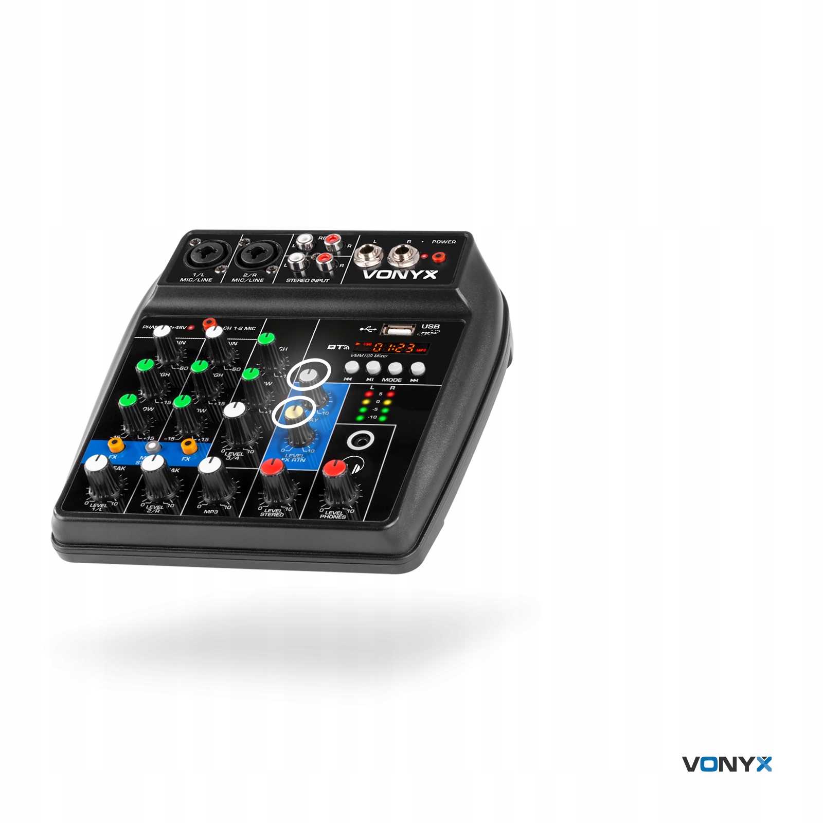 Микшерный пульт Vonyx VMM100 — это компактный, но универсальный аудиомикшер для множества приложений.