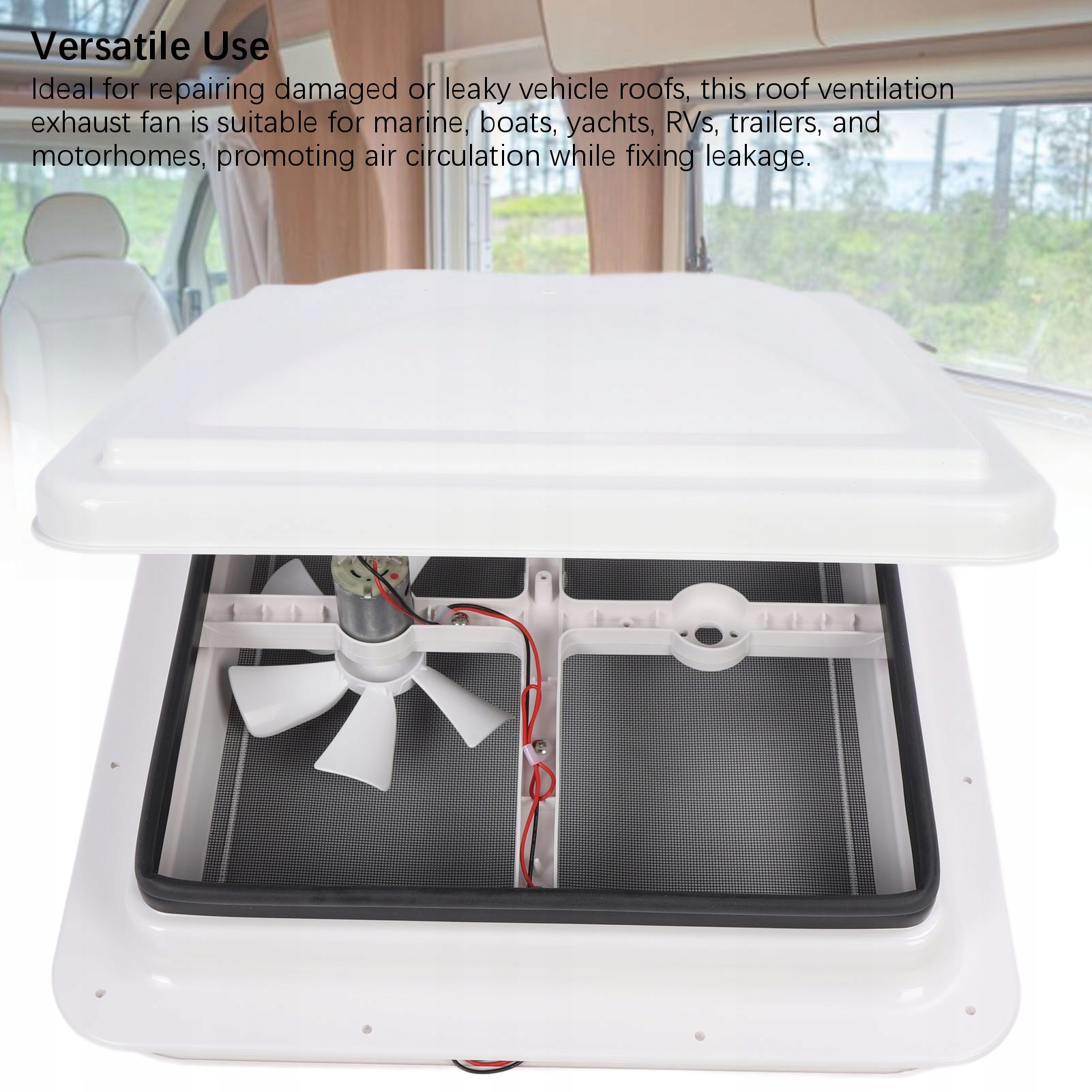 5. Универсальное использование: идеально подходит для ремонта поврежденных или протекающих крыш транспортных средств, этот вентилятор вентиляции на крыше подходит для моря, лодки, яхт, RV, прицепов и автомобилей, способствуя циркуляции воздуха во время ремонта утечки.