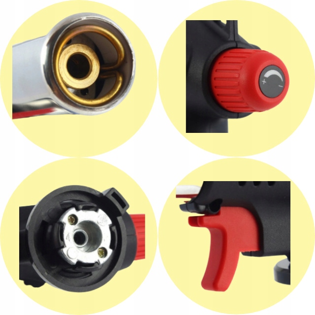 многоцелевой газовый горелка 360 ° питается пропаном-бутан или бутановым газом. Пьезоэлектрическое увольнение и высокая рабочая температура достигает 1300 градусов C. Горелка-это анти-карточка, которая позволяет вам работать под каждым углом (360 °) без угрозы для явления вспышки, что значительно влияет на комфорт работы.