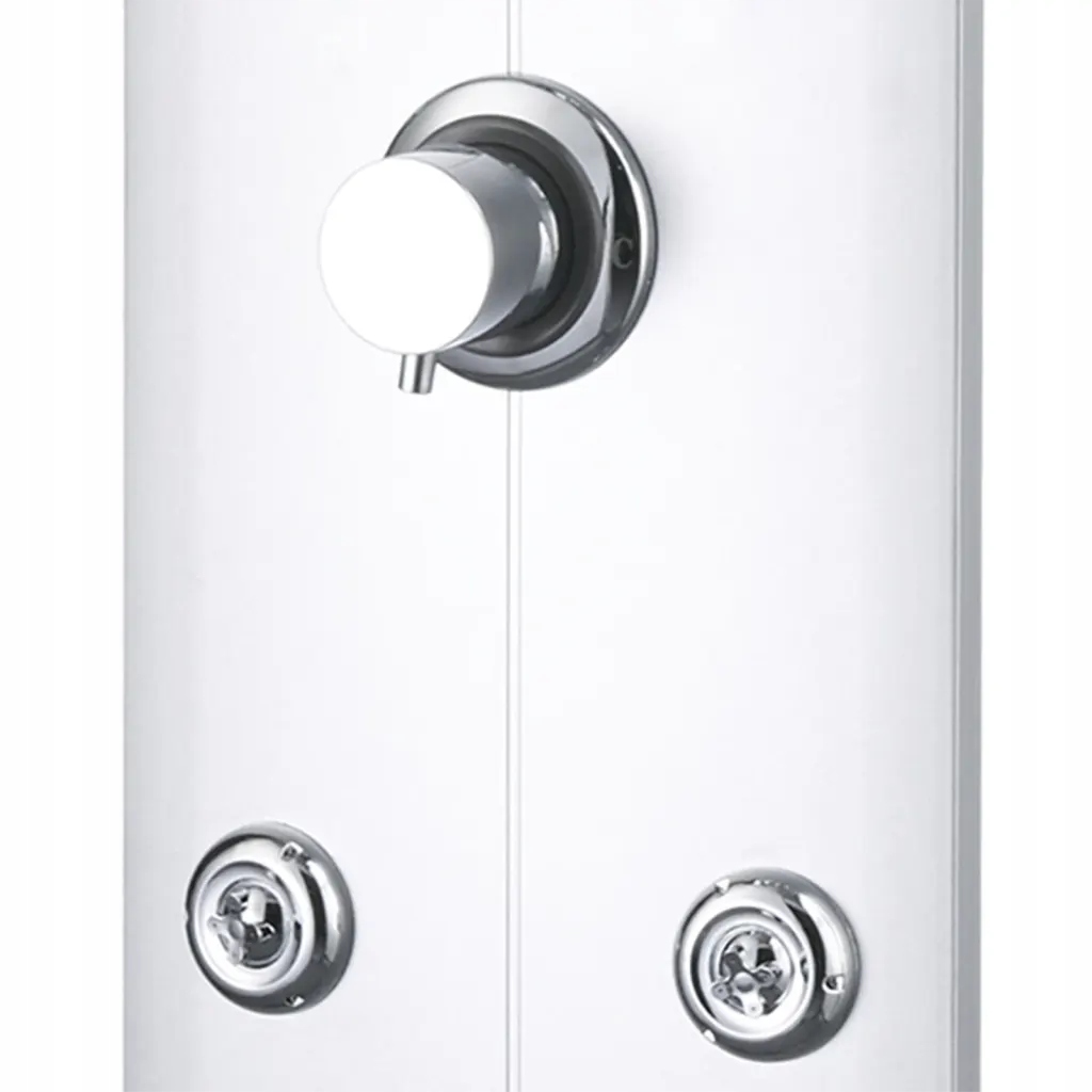 Основной элемент панели душа изготовлен из легкого пластика, что облегчает маневрирование. Он предлагает 3 варианта душа: дождь, массаж воды и насадку для душа. Панель содержит встроенное, маленькое зеркало. Стеклянная полка позволяет установить необходимые вам продукты, а силиконовые форсунки устойчивы к каменному осаждению.