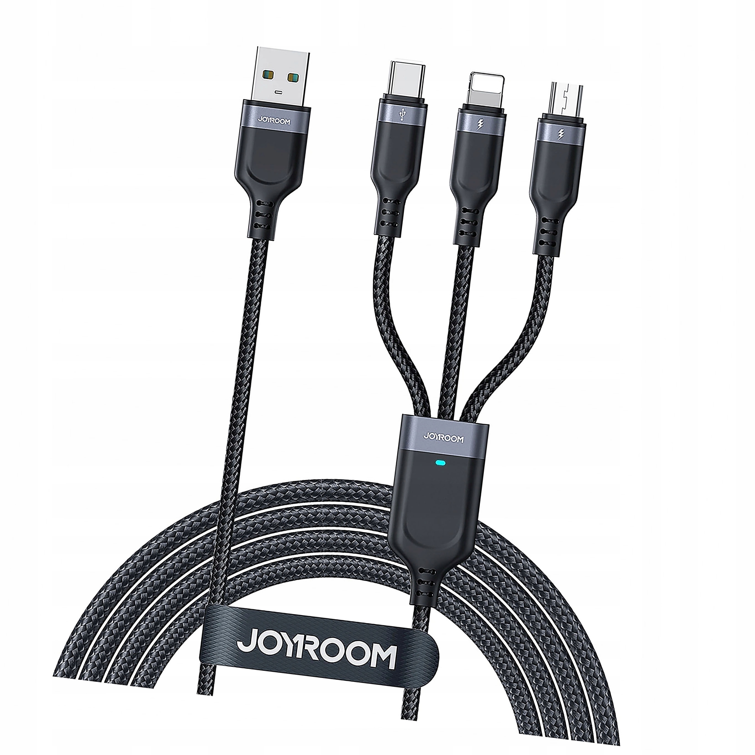 Joyroom Multiuly Series S-A18 3 в кабеле 1 с USB-A для разъемов Lightning / USB-C / Micro USB с длиной 1,2 М-чернокожих