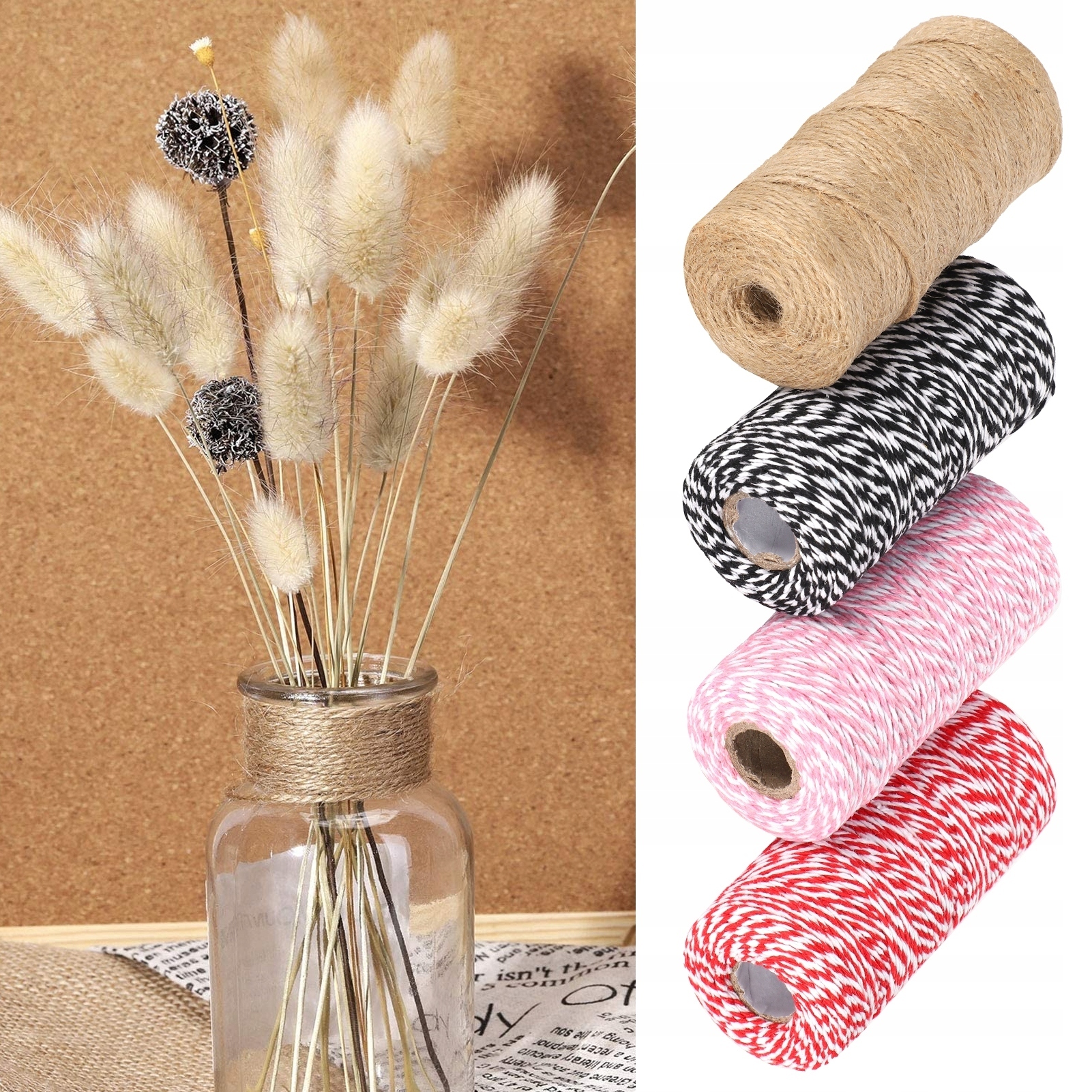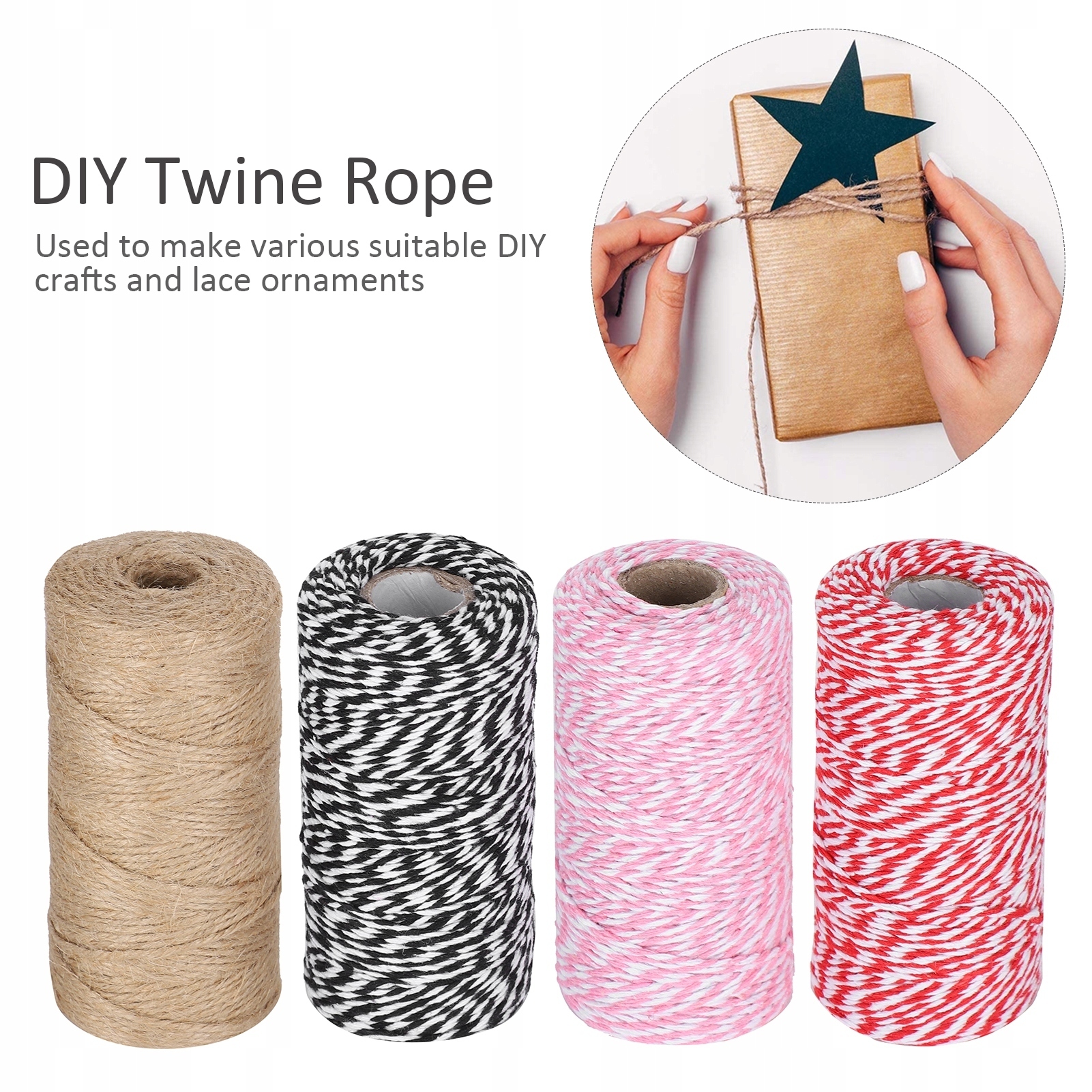 Общая длина: прибл. 100 м/328,1 футов повязки, нити, подходящие для упаковочных подарков, свадебных украшений, садовых проектов, ручной работы, предложений, ловцов мечты, упаковочных материалов, ювелирных изделий и ручной работы, игрушек для животных и т. Д. 4 шт. Веревка для обертывания скрученного хлопка