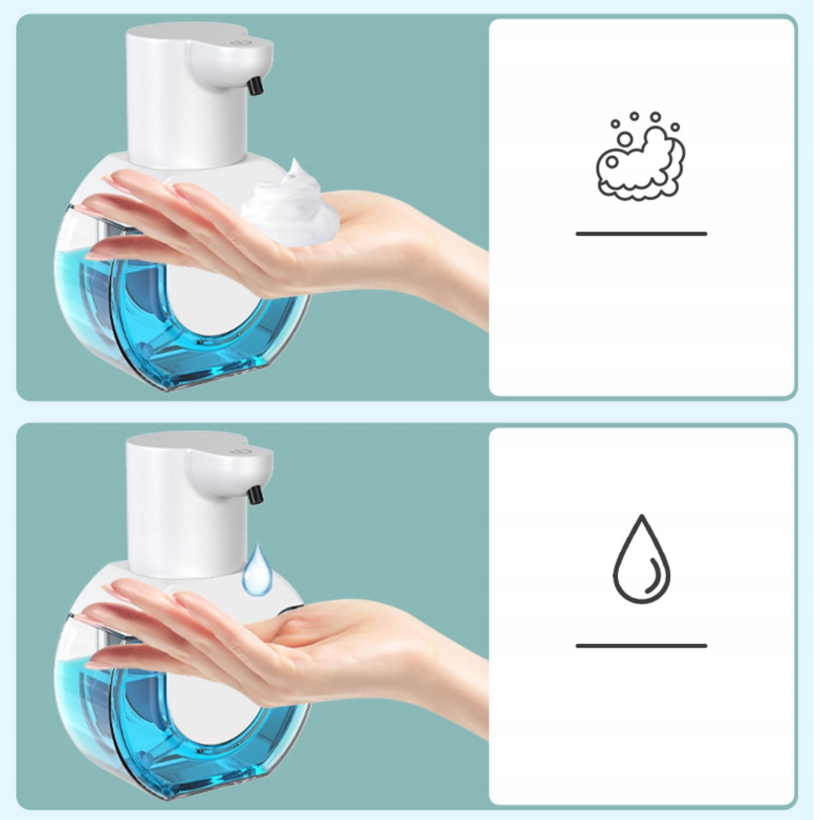 1. Универсальное использование: этот диспенсер мыла, не связанный с контактом, был разработан для размещения различных жидких мыла, включая шампунь, ручное промывание, мыло сосудов и чистящие средства лица. Его универсальная природа позволяет переключаться между различными продуктами без усилий.