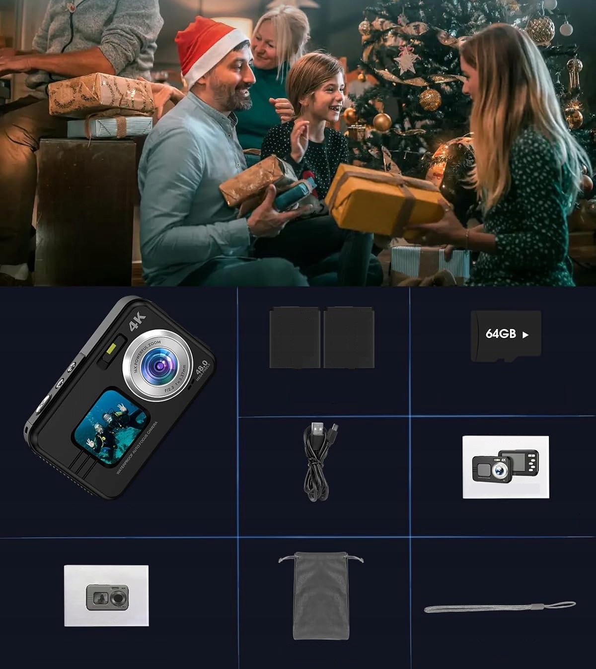 🎁 У вас есть водонепроницаемая цифровая камера имеет 48 мегапикселей, что позволяет вам делать высококачественные фотографии с высокими деталями.