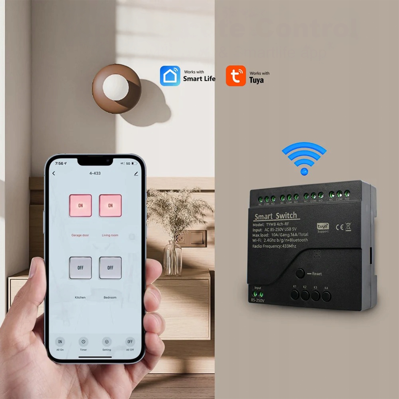 Автоматизируйте свои устройства и наслаждайтесь полным контролем над домом благодаря этому многофункциональному 4-канальному модулю интеллектуального переключателя Wi-Fi b>! Независимо от того, хотите ли вы контролировать освещение, гаражные двери, водяной насос или другое оборудование, этот модуль предоставит вам удаленный доступ и автоматизацию , используя приложение Tuya Smart Life, голосовые команды от Alex и Google Home и даже RF 433MHZ RF -удаленный контроль. Это готовое -до -актическое решение , которое сделает вашу жизнь проще и удобнее!