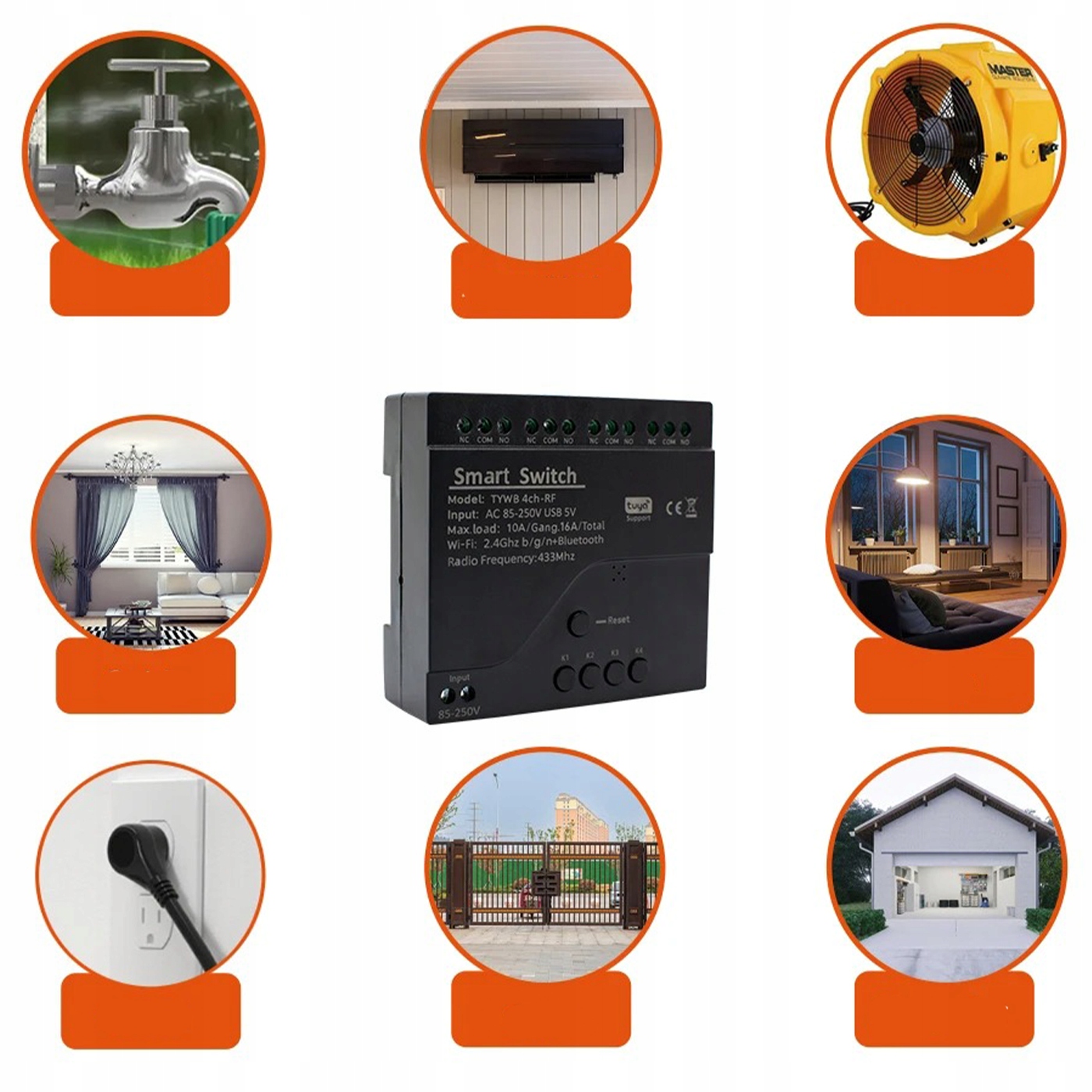 - ✔ широкое использование: идеально подходит для управления огнями, воротами гаража, насосами, двигателями, вентиляторами, шторами и многими другими устройствами в домах, офисах, фабриках или фермах.