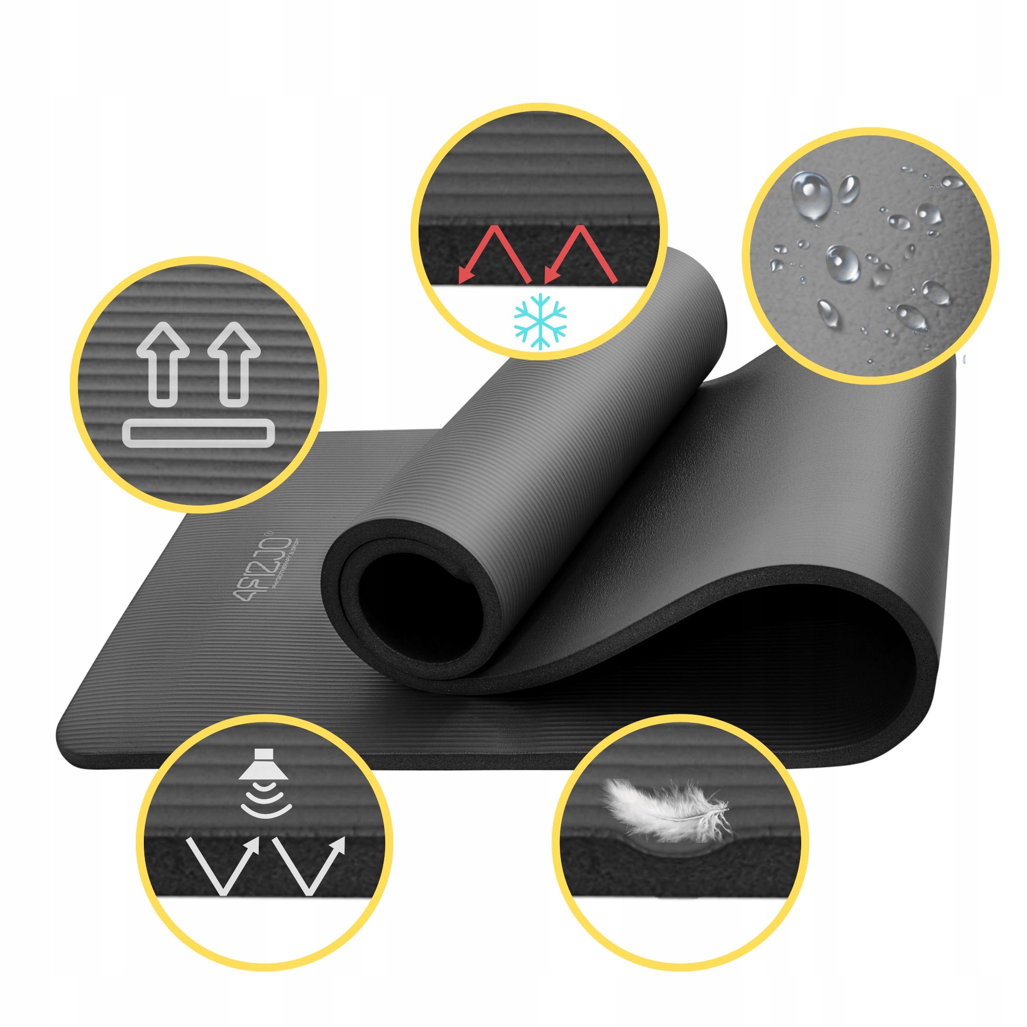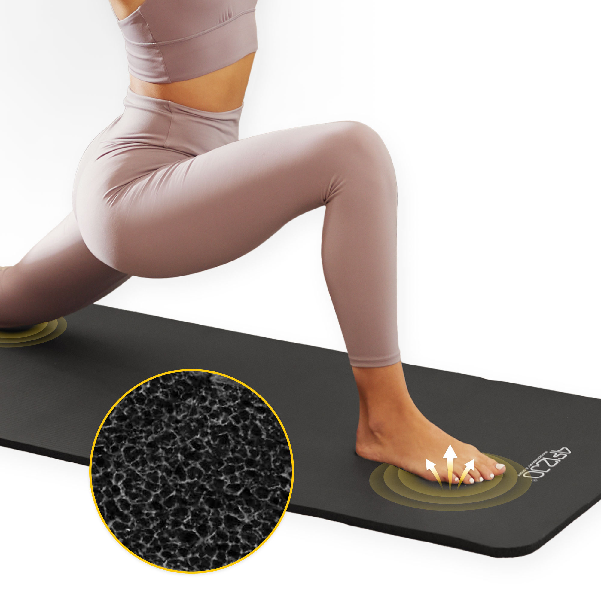 - ✅ до 1 см. Комфорт и амортизация для ваших соединений! Anti -Slip Surface of NBR - Безопасность даже с динамическими упражнениями