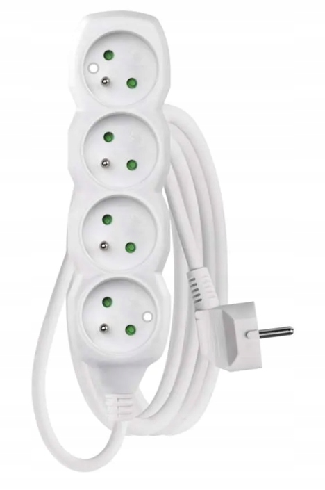 5 м удлинителя для 230 В ~ используется для обеспечения электроэнергии, где стационарный розетка не достигает. При установке на стене необходимо использовать винты PZ Pzin с максимальным диаметром 2,5-3 мм и длиной 30-40 мм. Использование винтов с помощью другого диаметра может привести к повреждению пластиковой корпуса для удлинения. Удлинительный шнур с поврежденным пластиковым корпусом не должен использоваться.