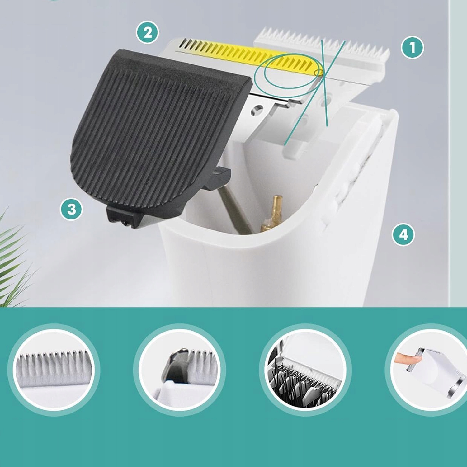 включали четыре заменяемые резки головы, сделанные из из нержавеющей стали и керамики высочайшего качества, которые сохраняют их предупреждение, не раздражая кожу вашего животного. Идеально подходит для точной настройки деталей, таких как лицо, уши, все тело, спина, основание лап и ногтей.