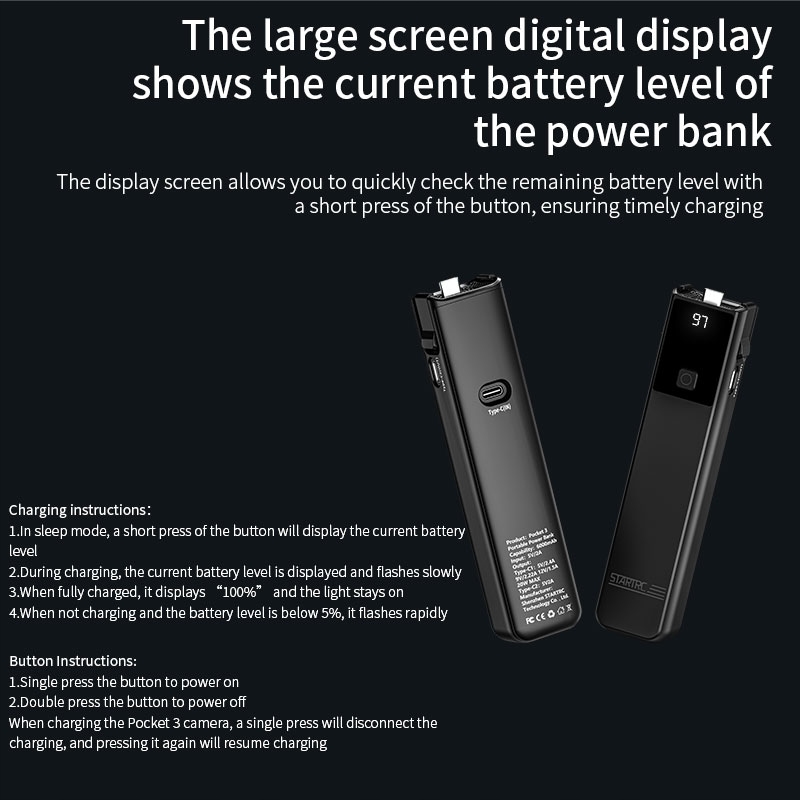 【Быстрая зарядка】 Pocket 3 держателя батареи с улучшенной выходной мощностью 20 Вт и новейшей технологией быстрой зарядки может зарядить камеру Pocket от 3 до 100% всего за 33 минуты! Это идеально подходит для фотографий, сделанных в движении, событий, в которых имеет значение, и интервью. Стреляйте во время зарядки и испытать беспрецедентную производительность и производительность!