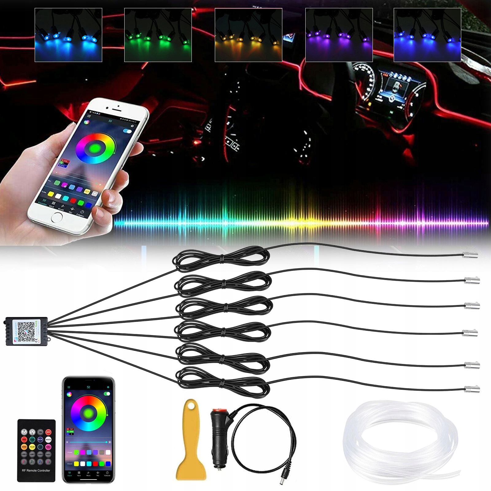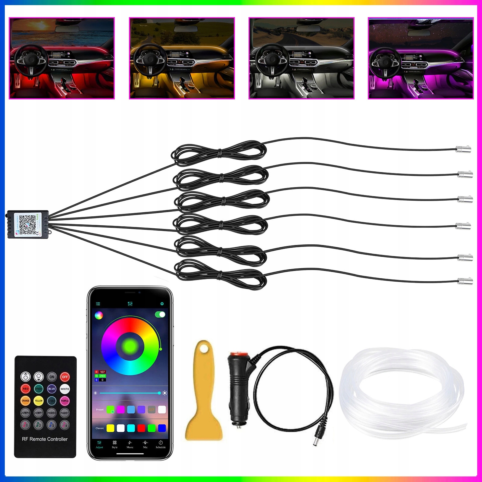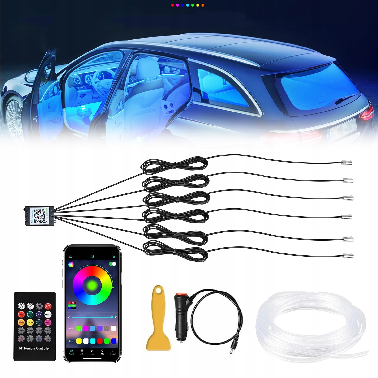 6x EL WIRE FIBER OPTIC LED RGB AMBIENT PILOT APP BT 8m ОСВЕЩЕНИЕ КАБИНЫ