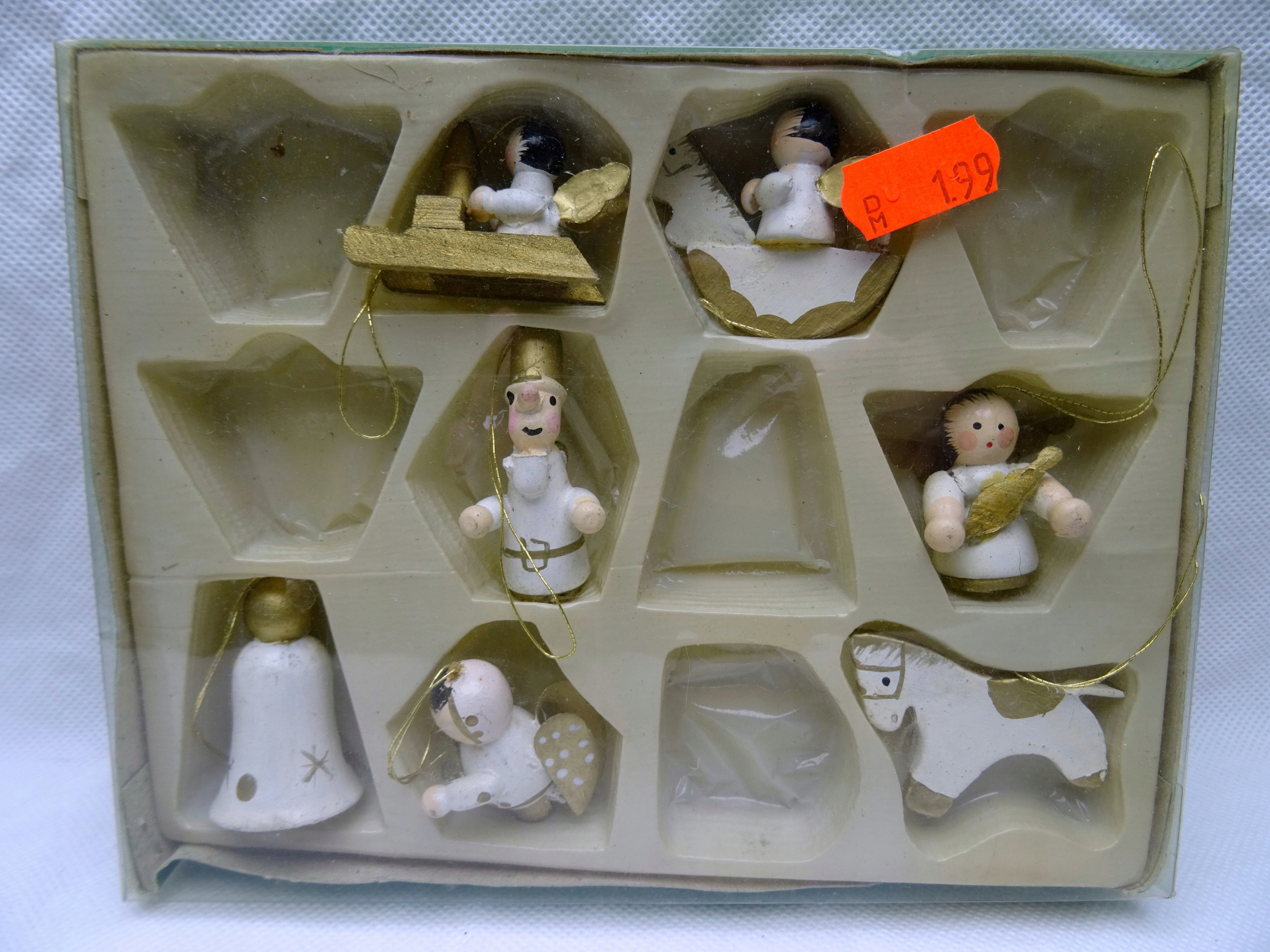 7 SZT DREWNIANE ZAWIESZKI NA CHOINKĘ OZDOBA ŚWIĘTA PRL ANIOLKI