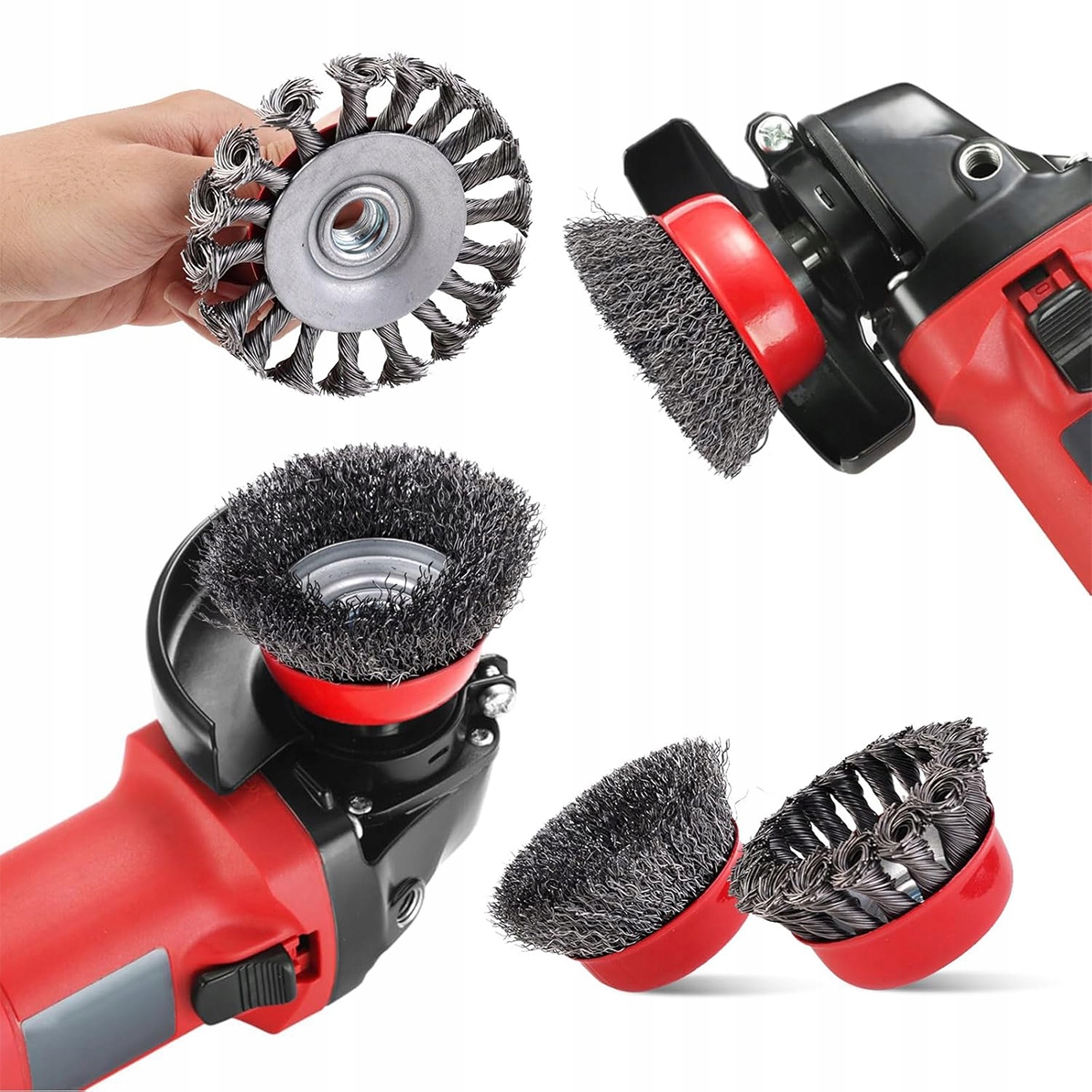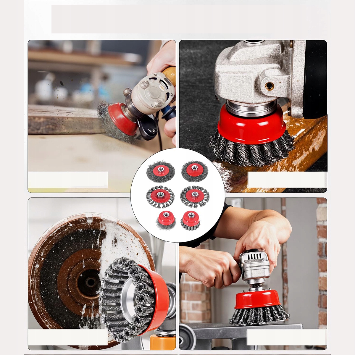 Различные размеры: 6 -цельный набор -содержит 6 стальных головок кистей, в том числе 2 головки дисков из 3 -дюймовых кистей, 2 с диаметром 3,9 дюйма и 2 головки чашки с диаметром 3,9 дюйма.