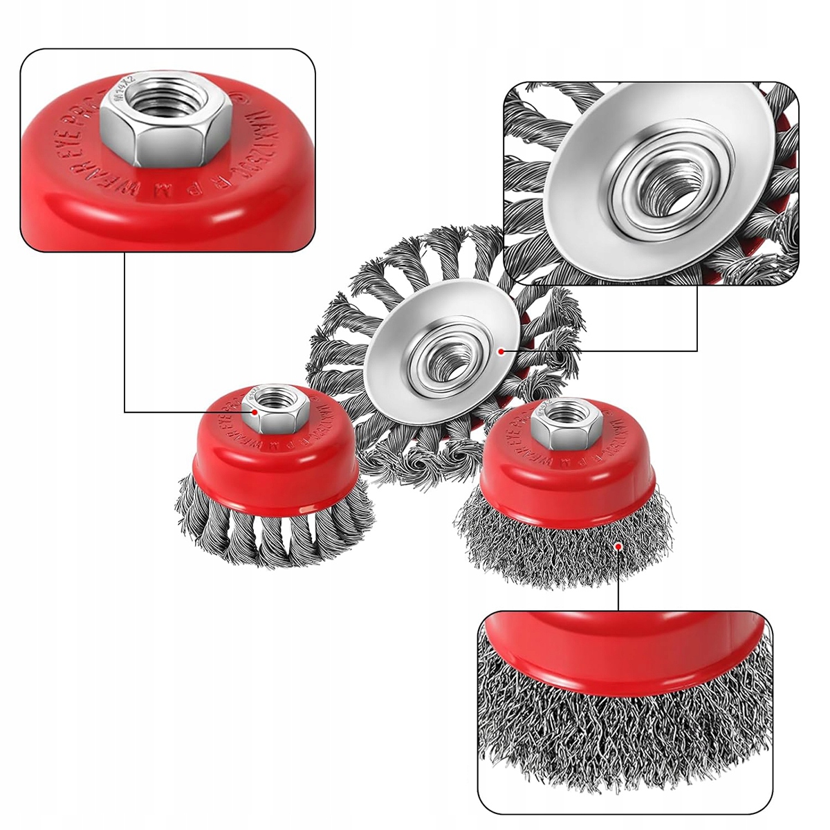 Отличный материал: набор проволочных щетков тщательно изготовлен из высококачественной нержавеющей стали, в красной сережной, устойчивой к износу и коррозии, что обеспечивает длительный срок службы и легкую работу.