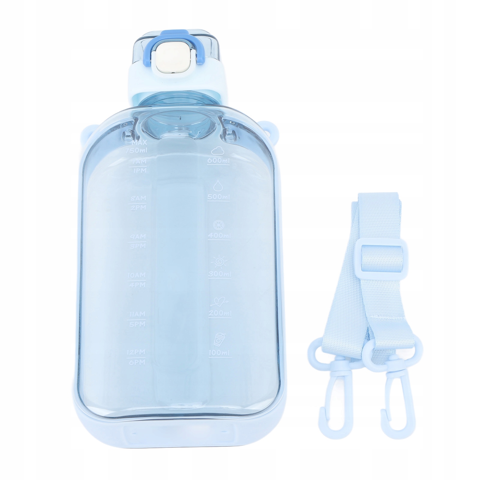 4. Открытие одним щелчком мыши и удобство переноски: откройте носик одной рукой, чтобы было удобно пить. Бутылка для воды емкостью 25 унций с плечевым ремнем легкая, ее можно легко носить с собой на свежем воздухе.