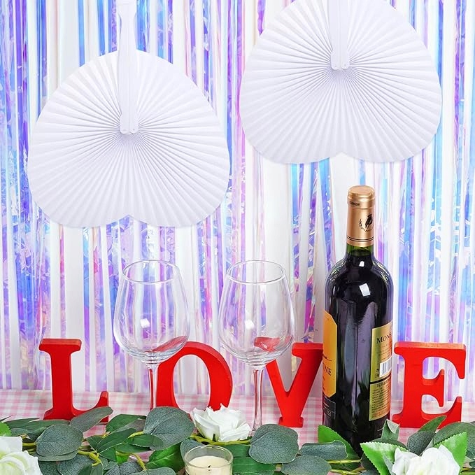 - Широкое приложение: вы можете использовать их для украшения свадеб, банкетов, пикников и создания уникальной атмосферы, которая оставляет забавное впечатление. Эта складная бумага идеально подходит для того, чтобы сохранить прохладу летом и создать романтический вид, чтобы создать замечательную свадьбу! Вы также можете написать или нарисовать что -то на нем, чтобы дать ему очарование и создать тонкое мастерство.