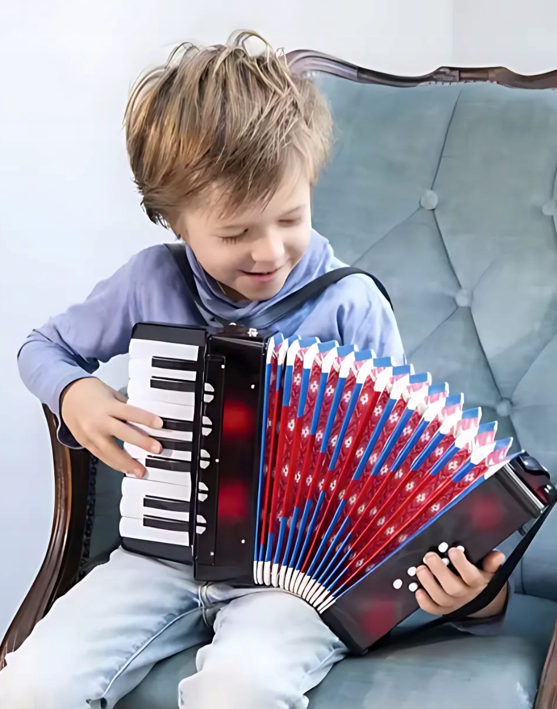 Игра на аккордеоне поддерживает разработку музыкальной слуха и физической координации , одновременно нажимая ключи и перемещая мои сильня. Это отличное упражнение для маленьких рук!