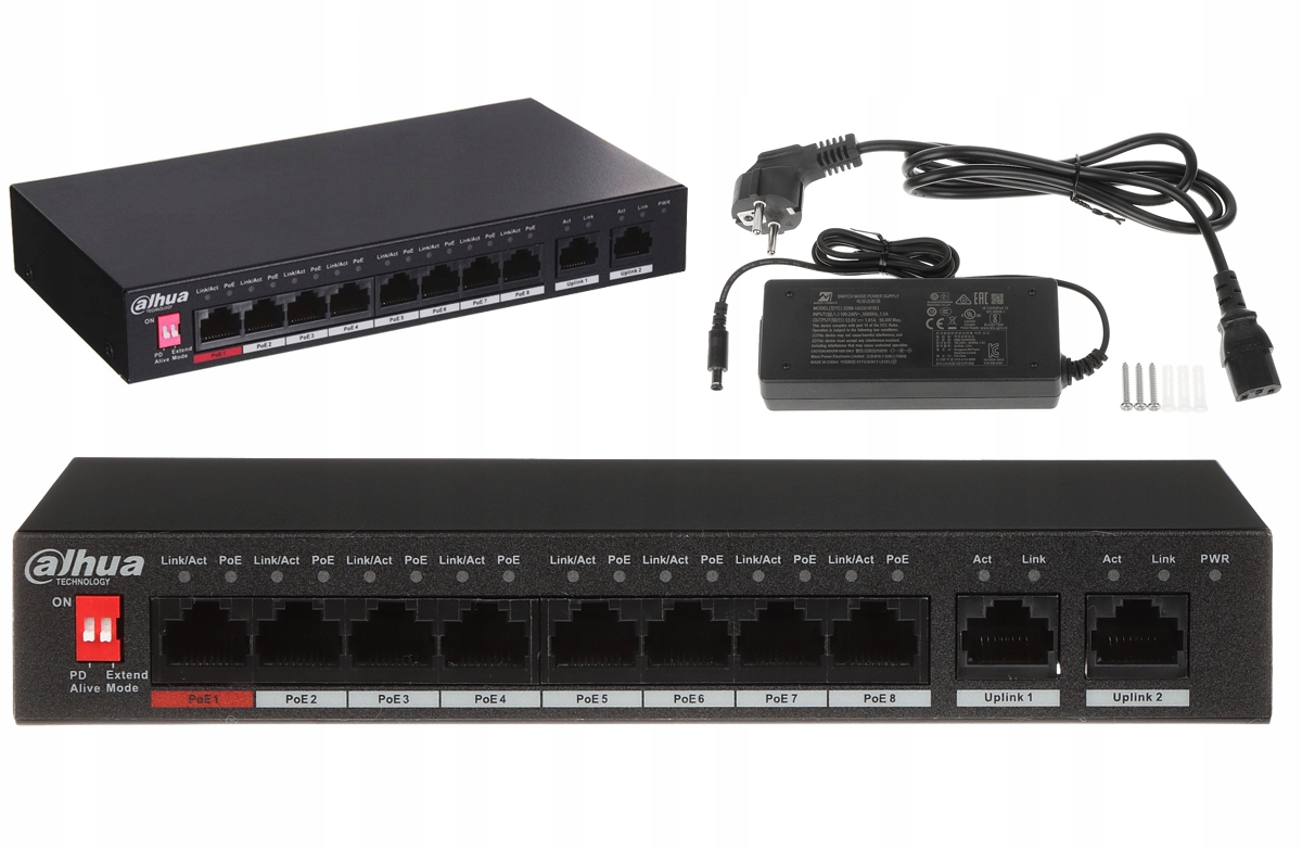 - Количество портов: 10 (8 портов PoE + 2 порта Uplink)