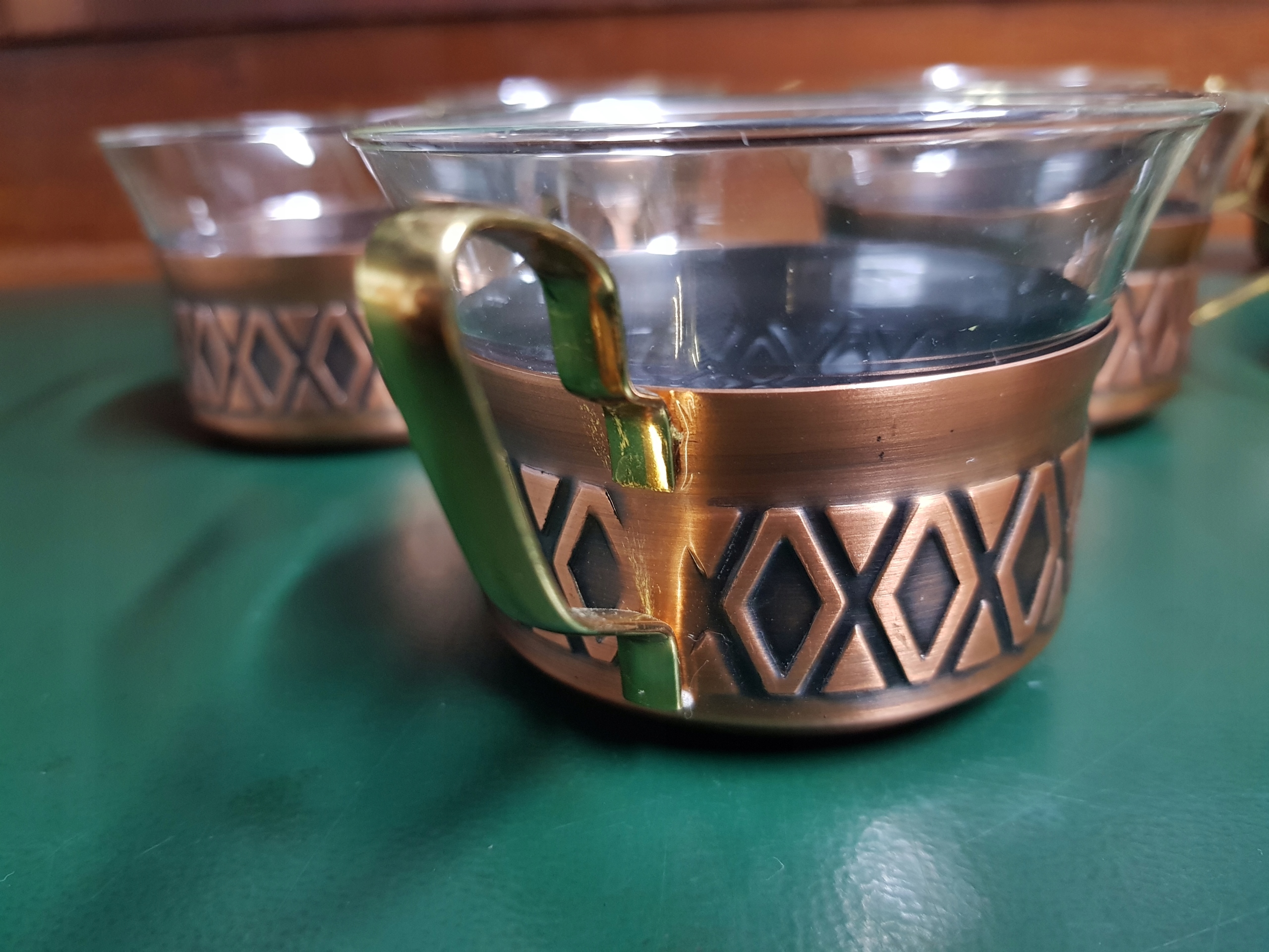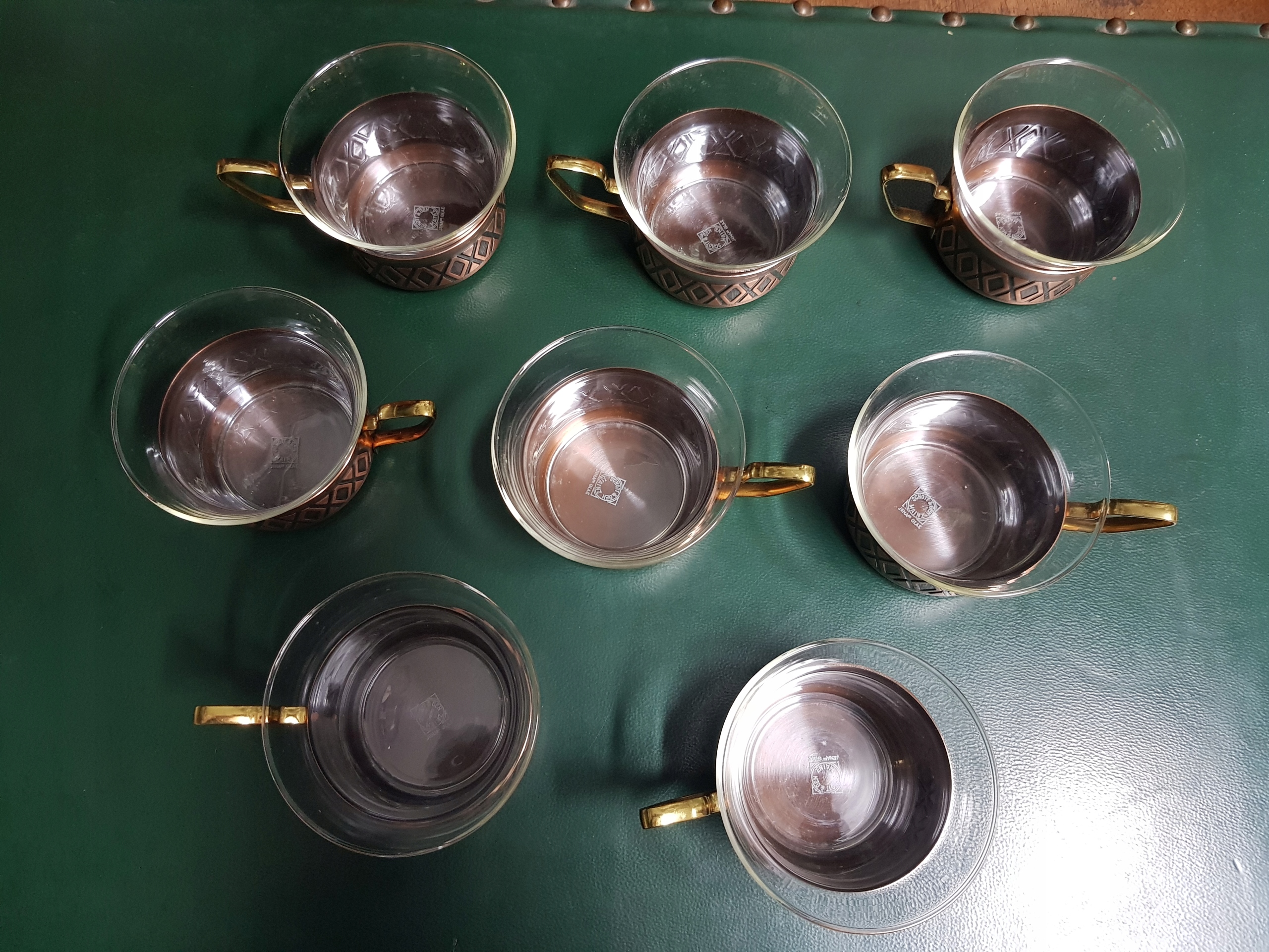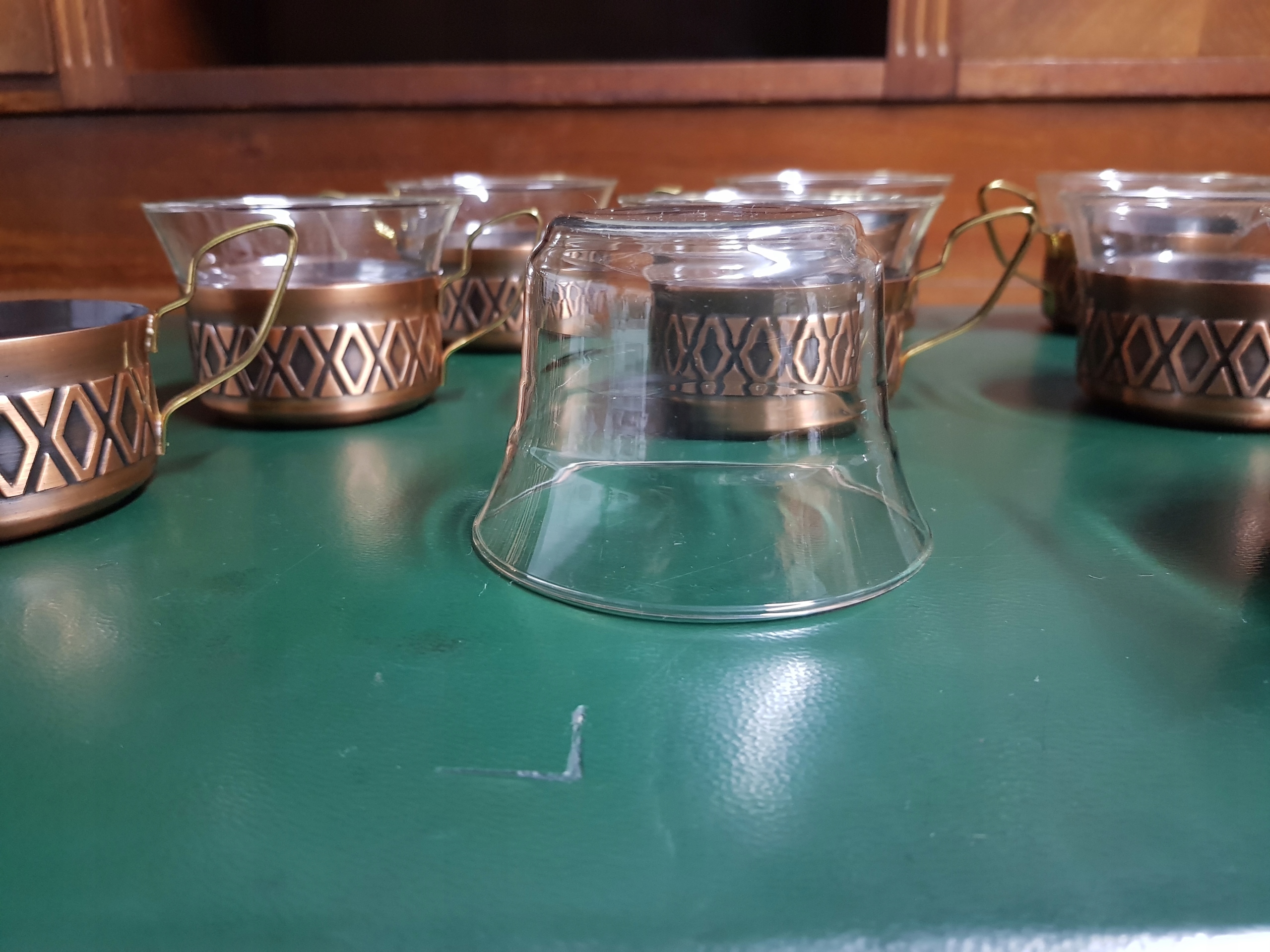 Предмет аукциона — 8 стаканов в медных корзинах.