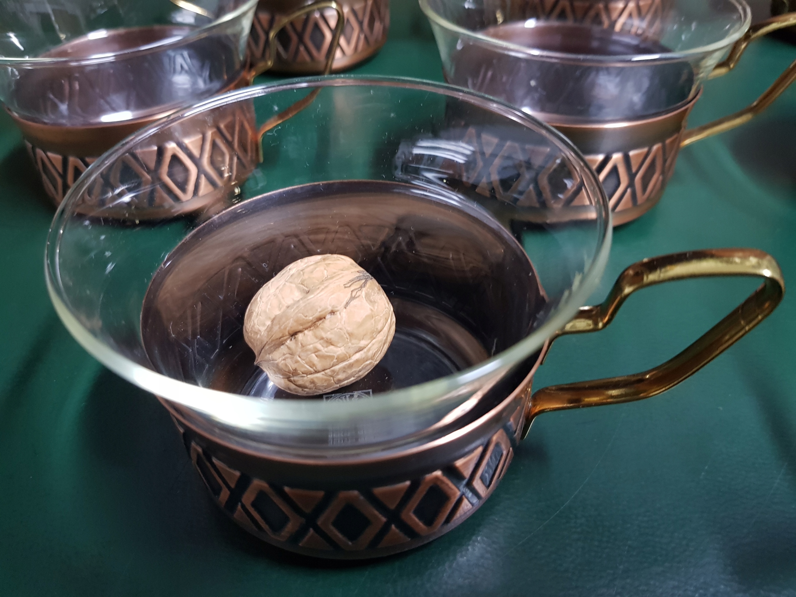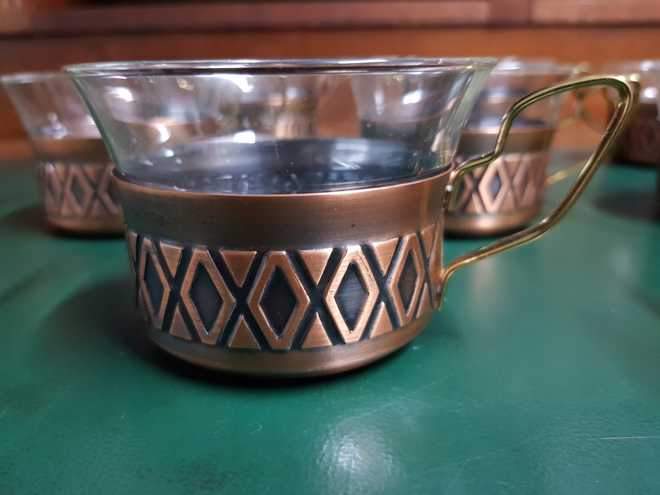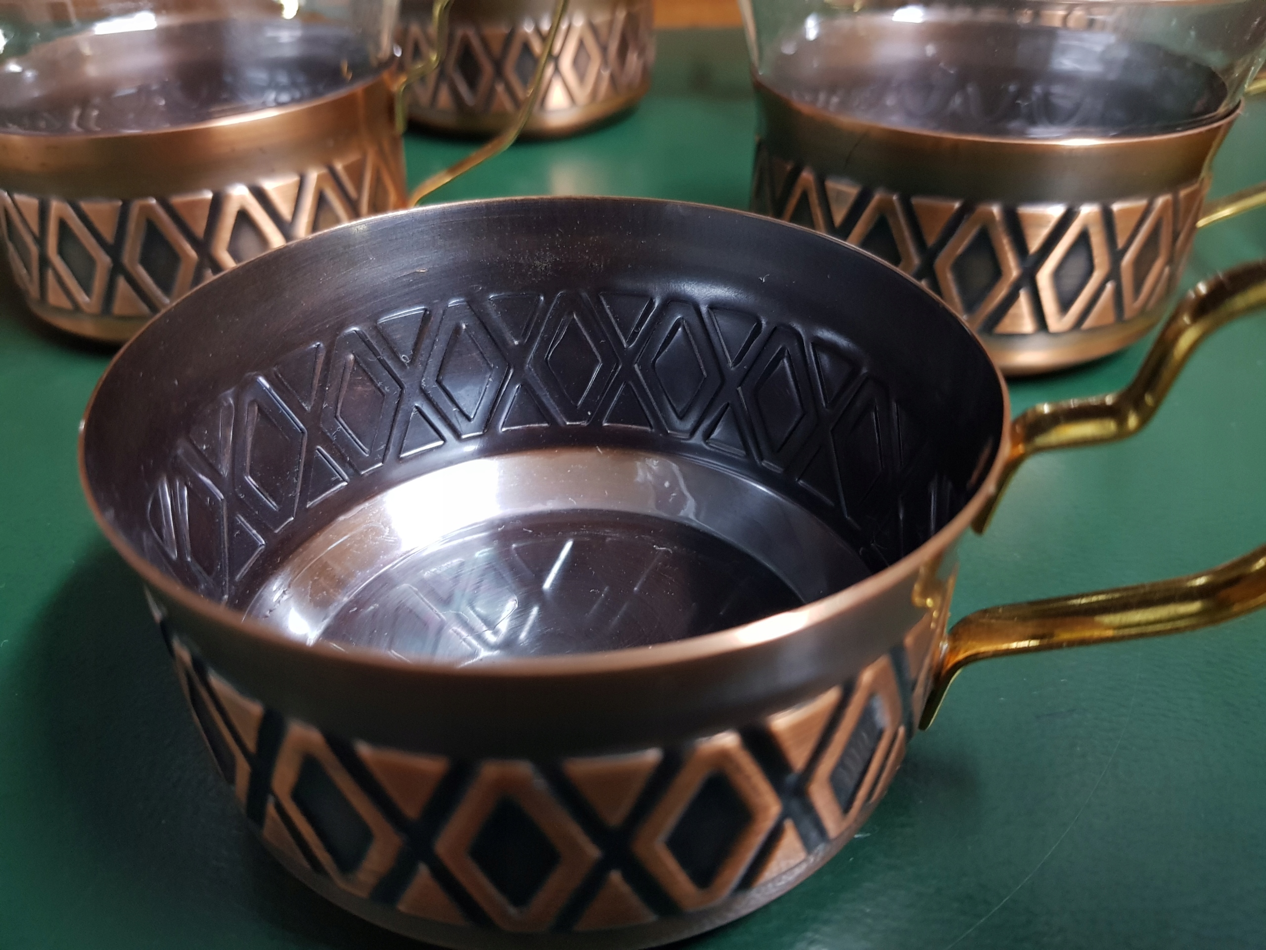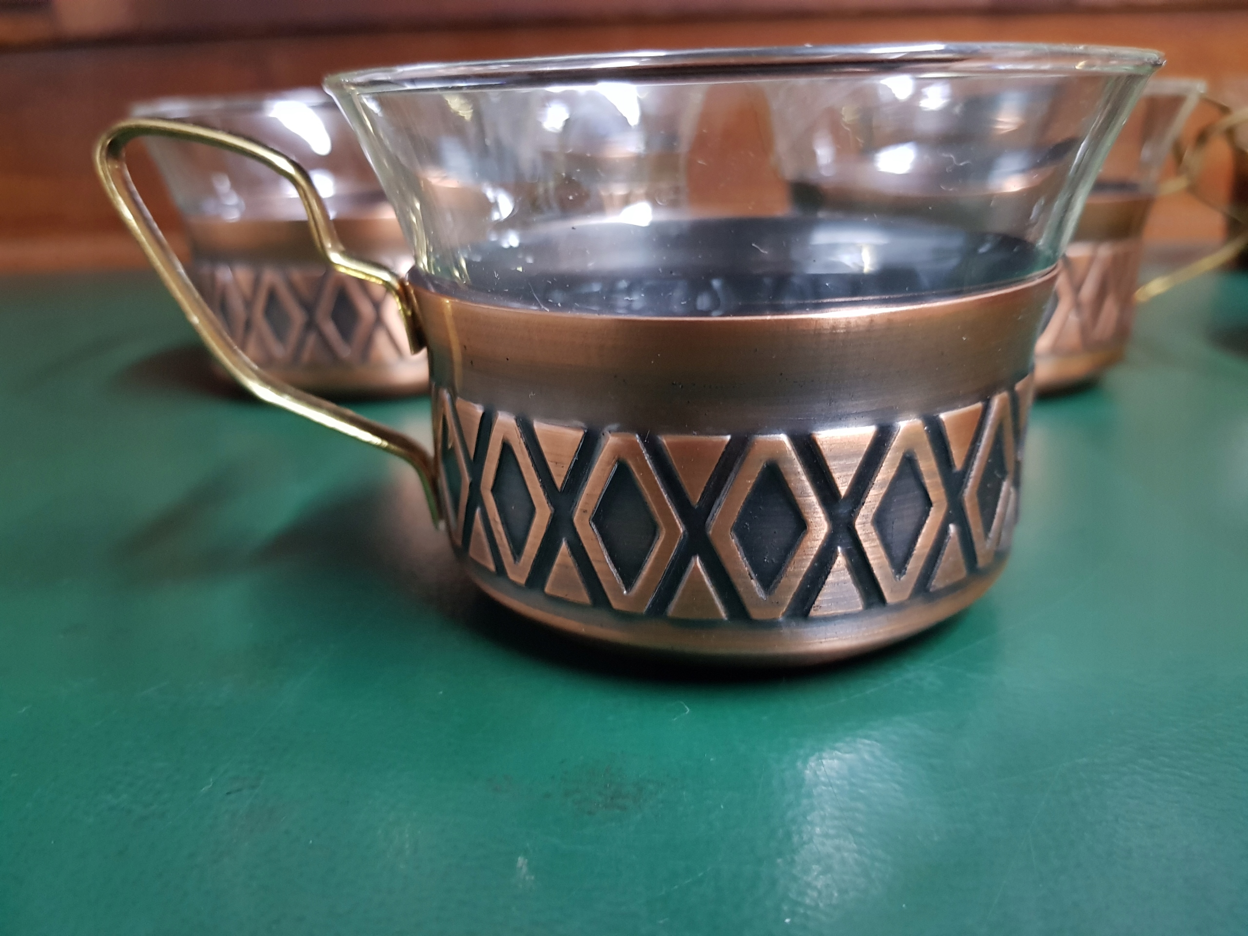 Предмет аукциона — 8 стаканов в медных корзинах.