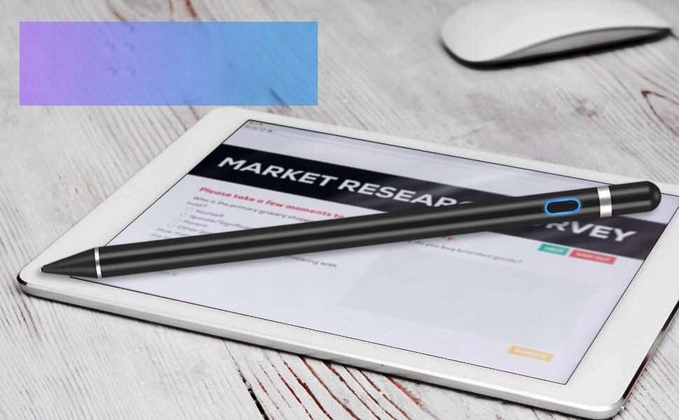 Начиная с одной клавиши: Просто нажмите кнопку только один раз (сияет синий свет), чтобы использовать универсальный интеллектуальный стилус. Это не требует Bluetooth.