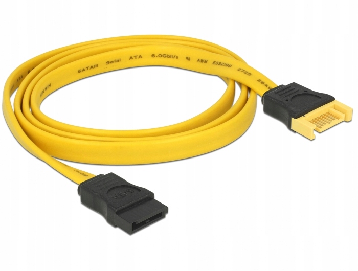 Кабель DELOCK SATA 6 ГБ/с, желтый удлинительный кабель 100 см (маленький>розетка)